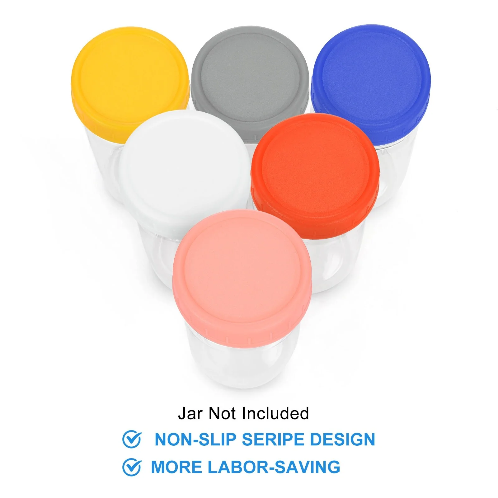 Description:[Material]: The Mason jar lid is made of good-quality plastic. The thickened material is sturdy, durable, and odorless. Each Mason jar lid comes with a silicone ring that is removable for easy cleaning. It is very suitable for storing food.[Design]: Our Mason jar lids feature vertical stripes on the edges to increase friction and prevent slipping, making it easier to tighten or open the lid. It is equipped with a silicone ring, which has strong sealing and can effectively prevent the contents of the bottle from leaking out.[Beauty and Convenient]: The lid can be easily cleaned with a cleaning brush. Its bright color can enhance the visual appeal of the jar, and add a touch of bright color to your Mason jar.[Application]: Plastic jar lid is suitable for a variety of jars such as Mason jars and Ball jars. They can be used to hold many different types of food such as candy, cereals, fruits, salads, etc. Their portability and leak-proof design make them a great choice for outdoor picnics, camping, or traveling.