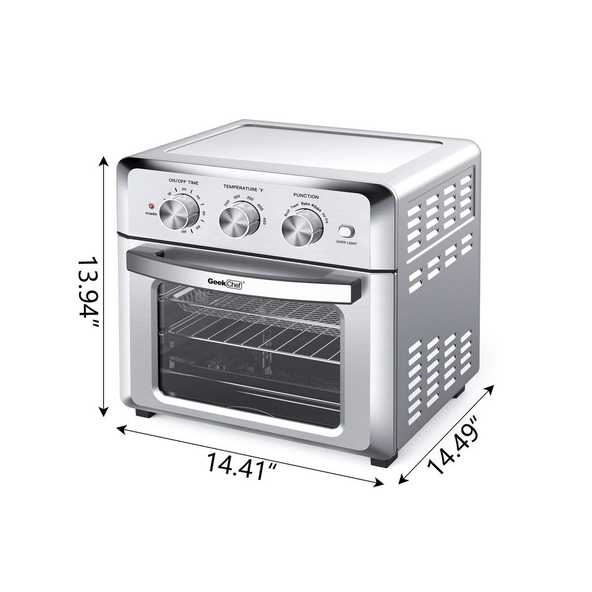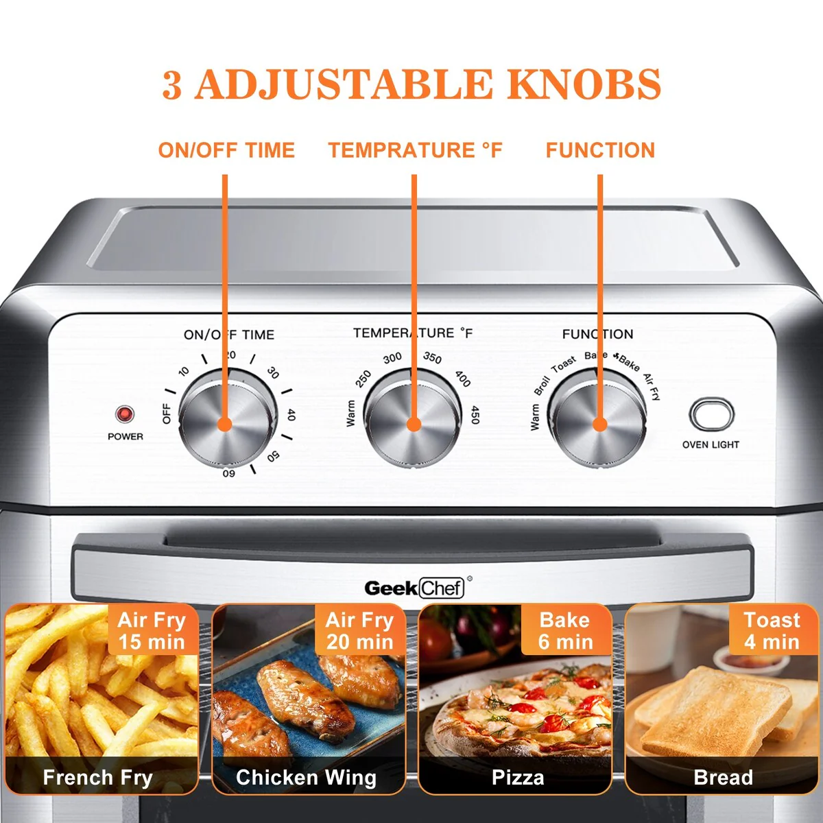 - Â Family size&Space saving design: 19QT, allow you to prepare family-sized quantities for up to 10 people at once, or control how fast and crispy your food cooks. With a compact and sleek design this air fryer oven can be placed on your countertop or stored away when not in use.