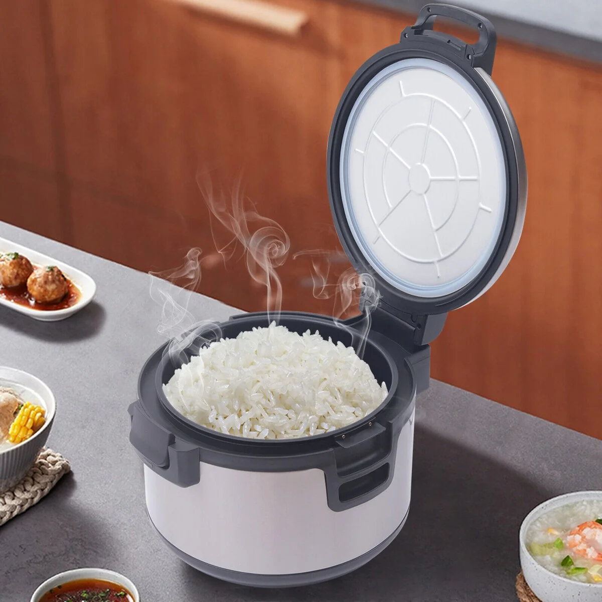 - Large Capacity: Holds up to 19 liters of rice, perfect for high-demand commercial settings such as restaurants and catering services.