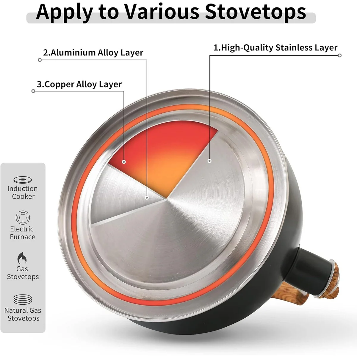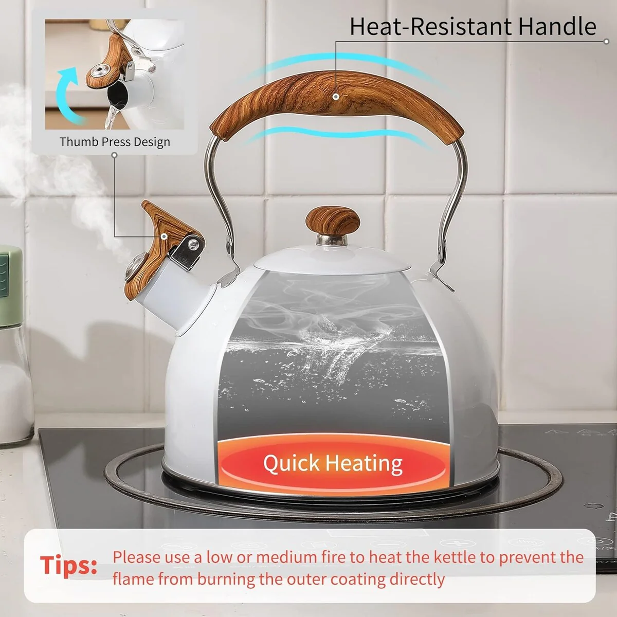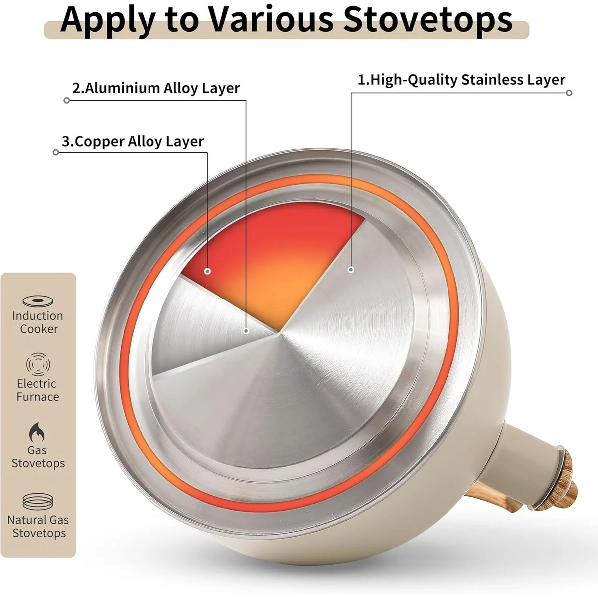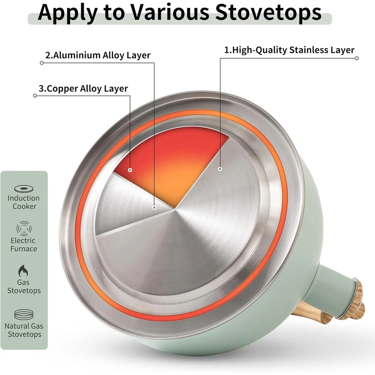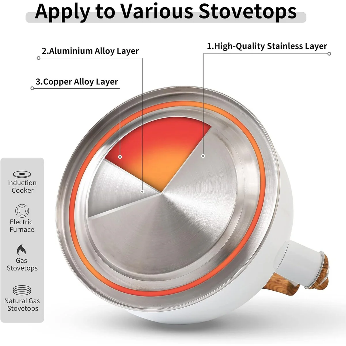 - Â Applicable for all kinds of stove top such as induction cooker, electric furnace, gas and natural gas stovetops. please use a low or medium fire to heat the kettle to prevent the flame from burning the outer coating directly.Â