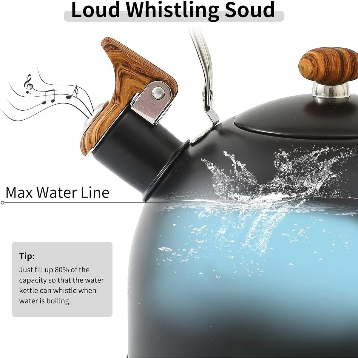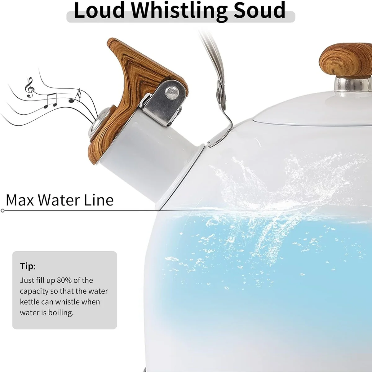 The teapot will remind you with a whistle after boiling water to prevent you from forgetting to turn it off and drying the water up. Please make sure that the water level is below the water outlet of the kettle to ensure that the whistle is working properly.Â