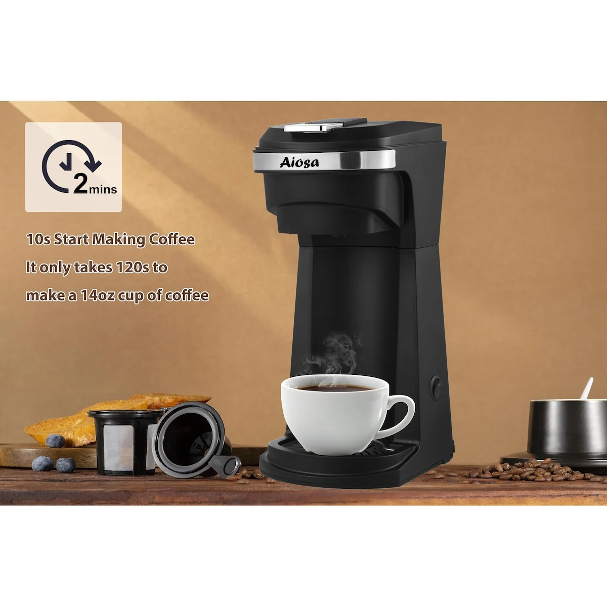 2 in 1 Single Serve cup Coffee Maker 6-14Oz,With Travel Cup,Mini Single Coffee Maker Machine,One Button Operation,Auto Shut Off