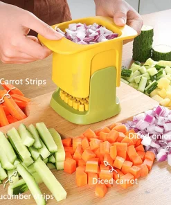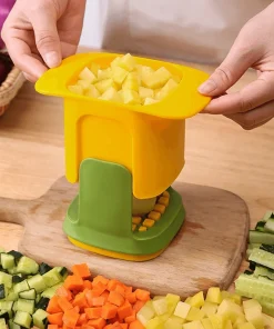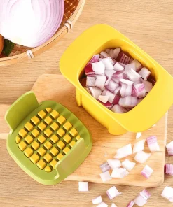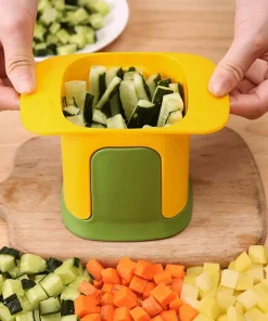 About this itemdown arrowCut fruits & veggies effortlessly and quickly for convenient meal prep.Razor-sharp blades deliver precise cuts in seconds, ensuring finger safety with zero contactSay goodbye to knives: one gentle press and your produce is perfectly diced or slicedAll-in-one solution: no cutting board or extra tools needed for a seamless kitchen experienceConsistent 1.2cm cubes enhance flavor and presentation for delectable dishesVersatile chopper perfect for a wide range of veggies and fruits, from carrots to apples
