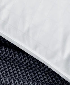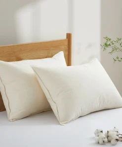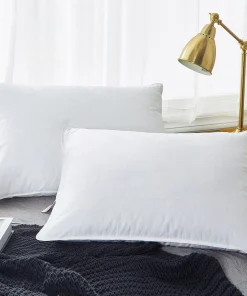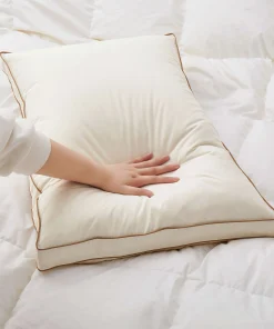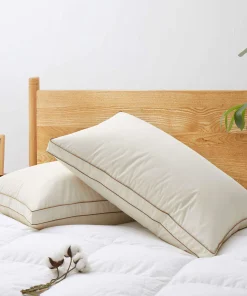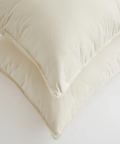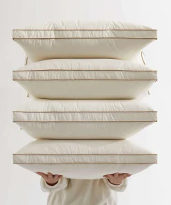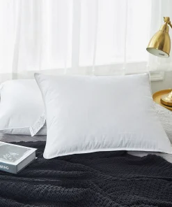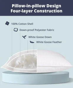 This pillow is highly sought after by our customers due to its unique pillow-in-a-pillow design and special 4-layer construction. The outer layer of the pillow is filled with a blend of 75% white down and 100% goose feather, creating a luxuriously fluffy feel for a truly dreamy sleep experience. The middle layer is exclusively filled with 100% feather to provide optimal support and firmness for your neck and head. The carefully chosen fill materials ensure that the pillow remains odor-free. With a medium-firm density, this pillow is ideal for side and back sleepers. The breathable 300-thread-count 100% cotton cover adds a soft and comfortable touch, while the classic pattern on the cover enhances the overall aesthetics of your bedroom.Â