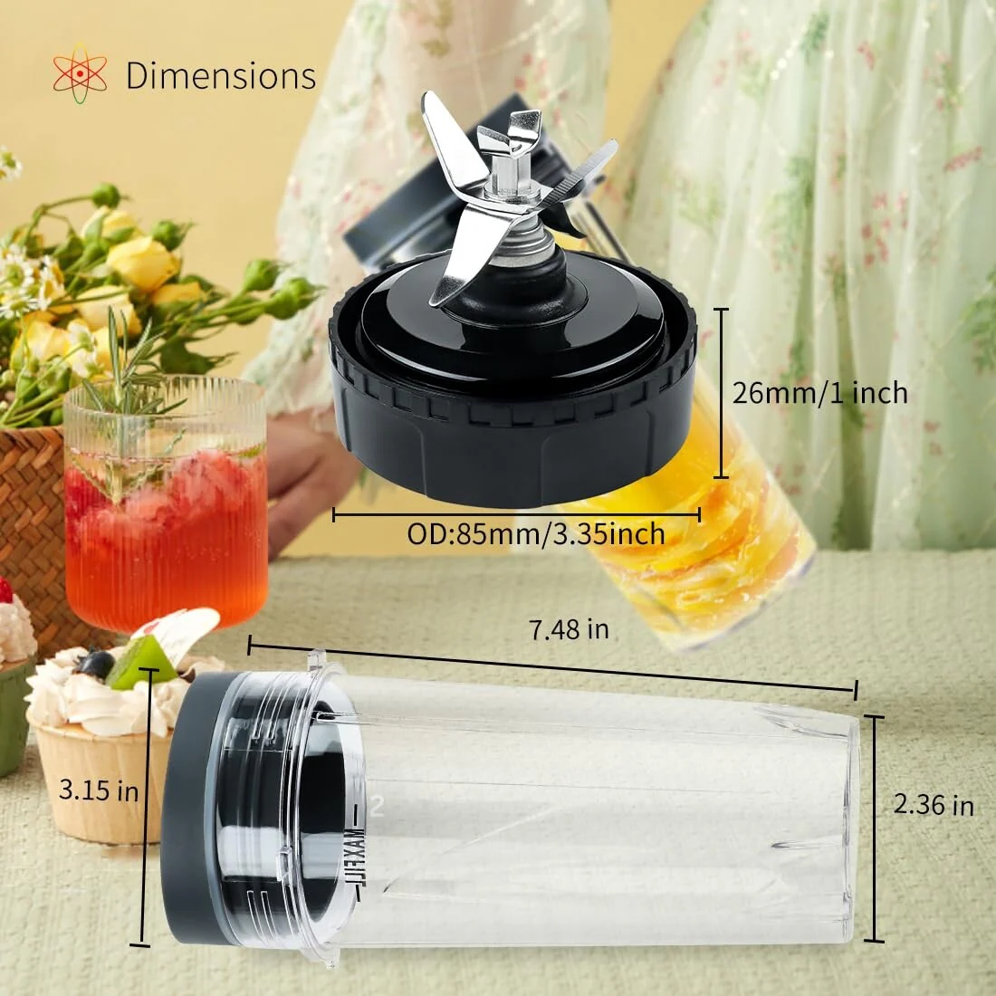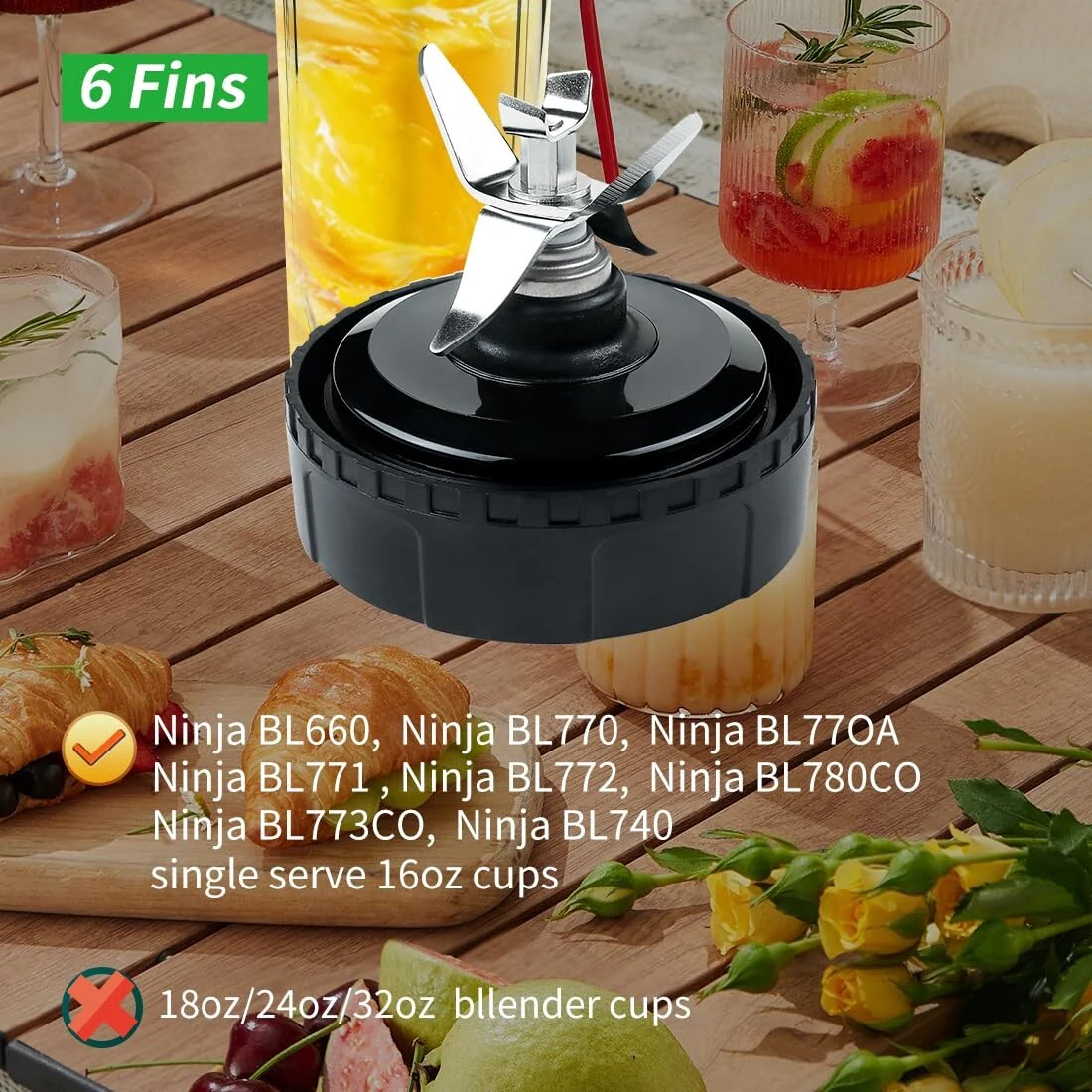 2 Pack 6 Fins Blender Blade Assembly and Single Serve 16 oz Cups Replacement Parts Compatible Professional Smoothie Blender