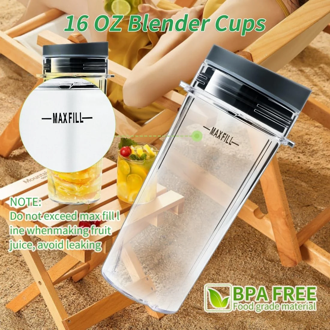 【PACKAGE INCLUDE】: 2* Single Serve Blade, 2 * 16oz Single Serve Cups with Lid.