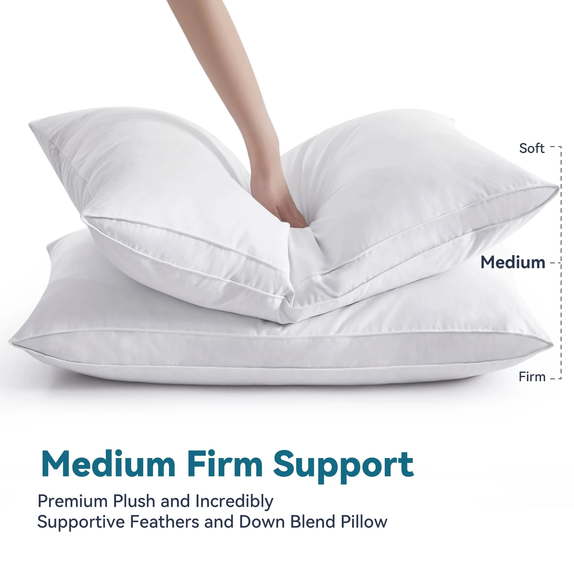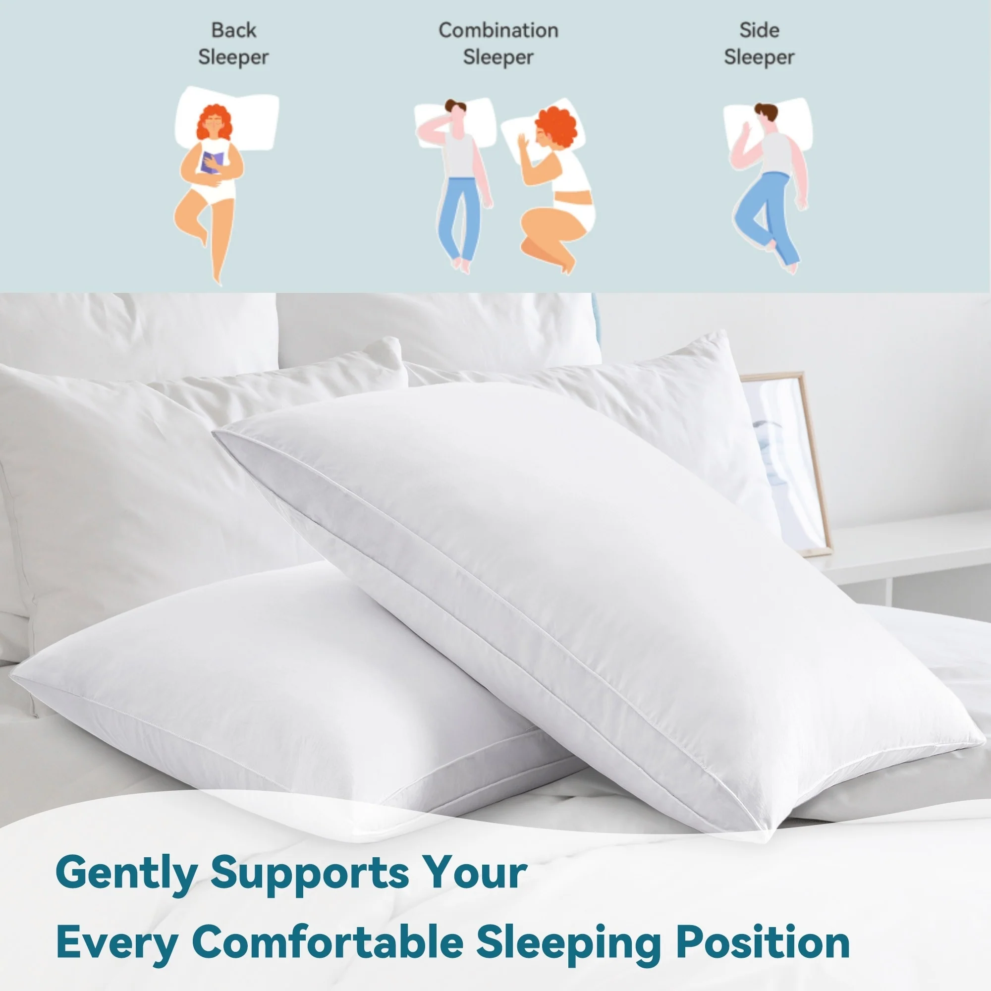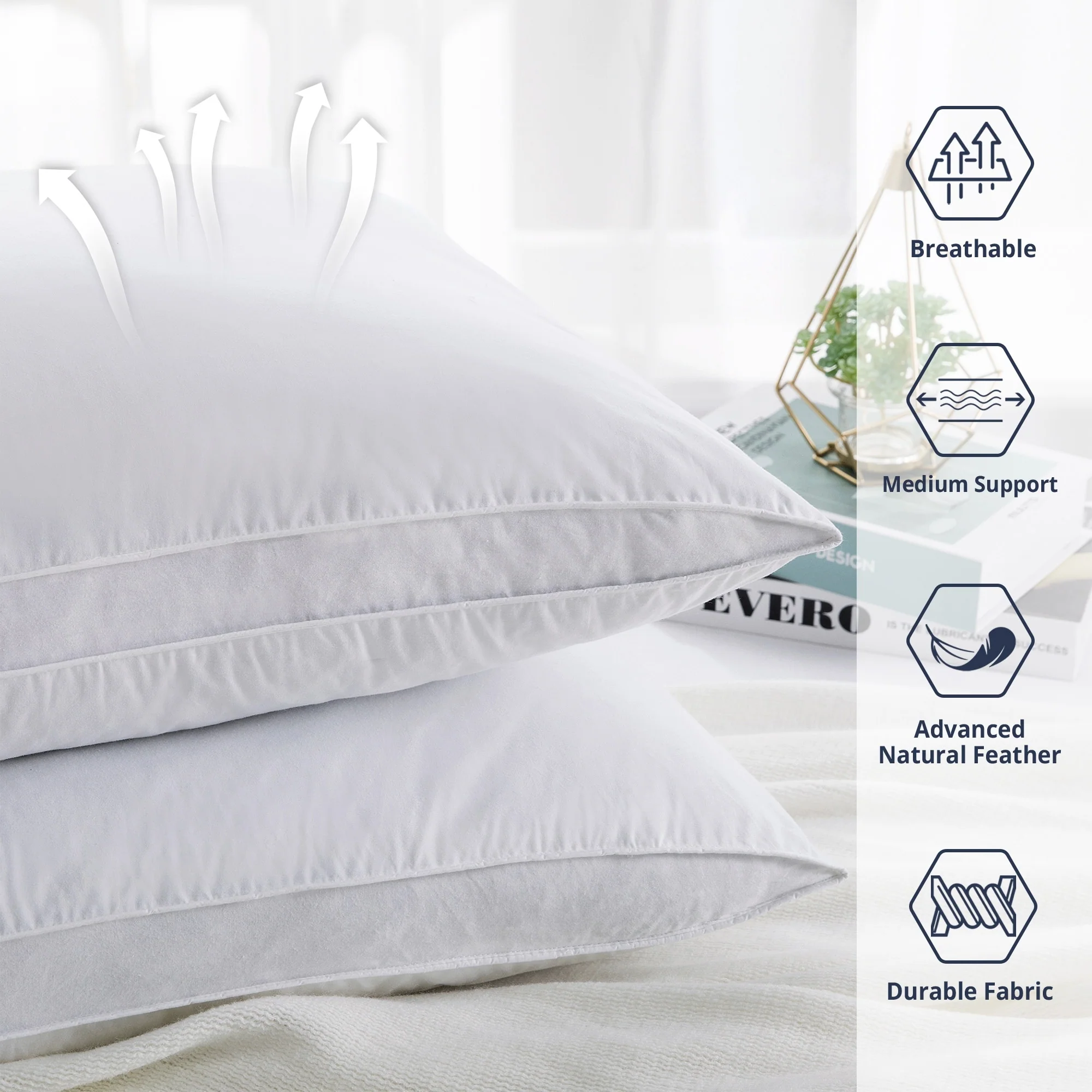 Rest your head in the cloud-like comfort provided by this feather down pillow. The special oval gusset design allows the feather and down to expand for maximum loft and support and better breathability. 233 thread count cotton cover is soft and cozy to lay on, and single needle stitched edging helps avoid any potential feather discomfort. Try this quality pillow, relaxing your body and helps you fall asleep with a sweet dream. Machine washable for easier cleaning and caring.
