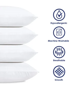 Pillows are 100% super soft microfiber with medium-soft support, pillows are down alternative fiber filling. Provides support for All Sleepers.Feature: