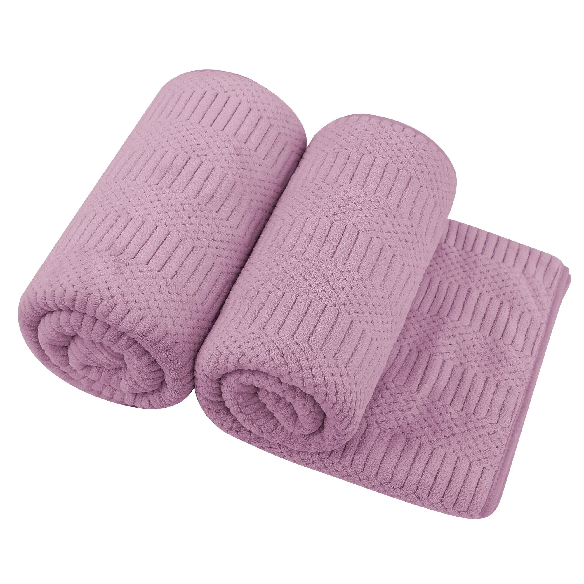 2 Pack Premium Jacquard Fleece Bath Towel, Velvet Highly Absorbent Towels 30"x60"