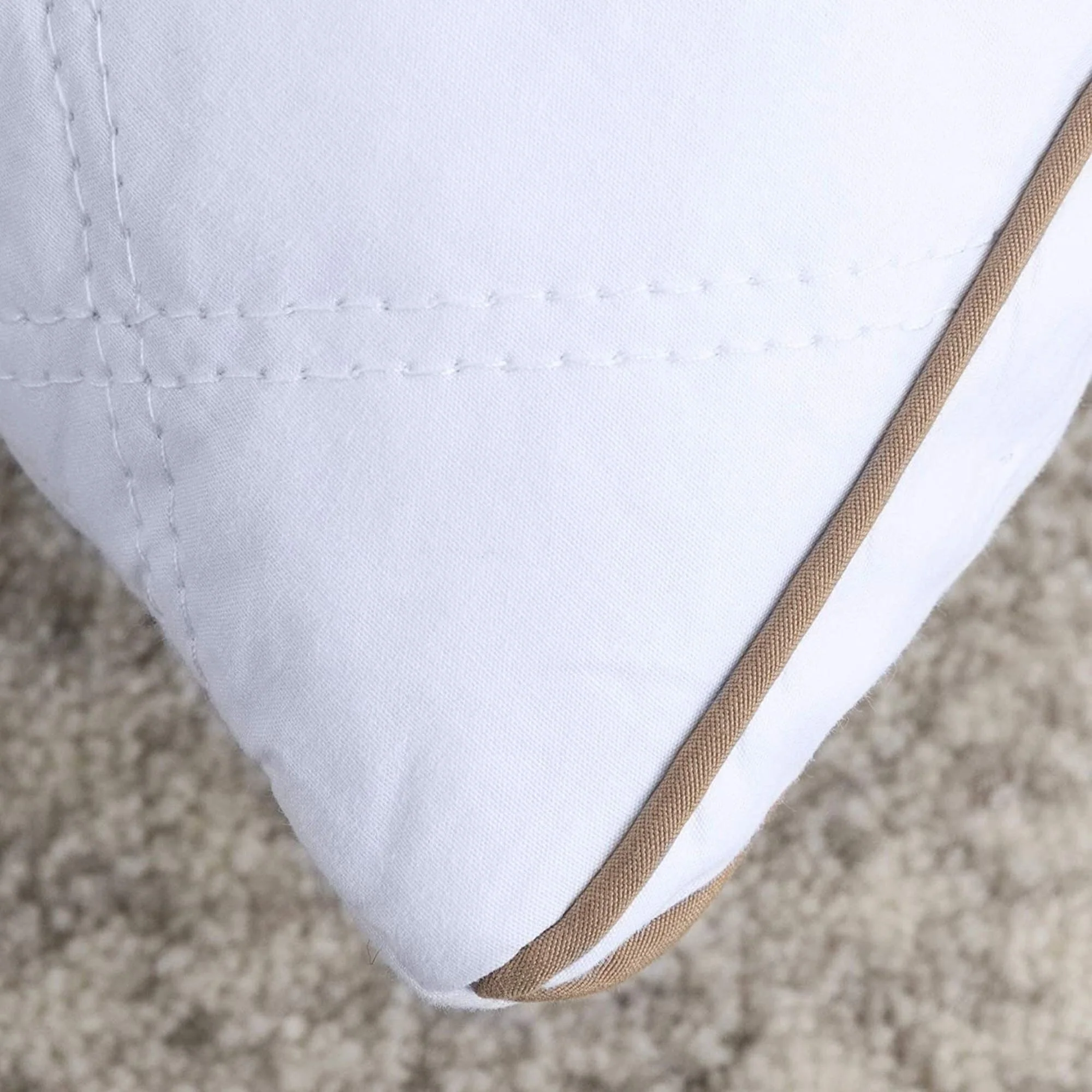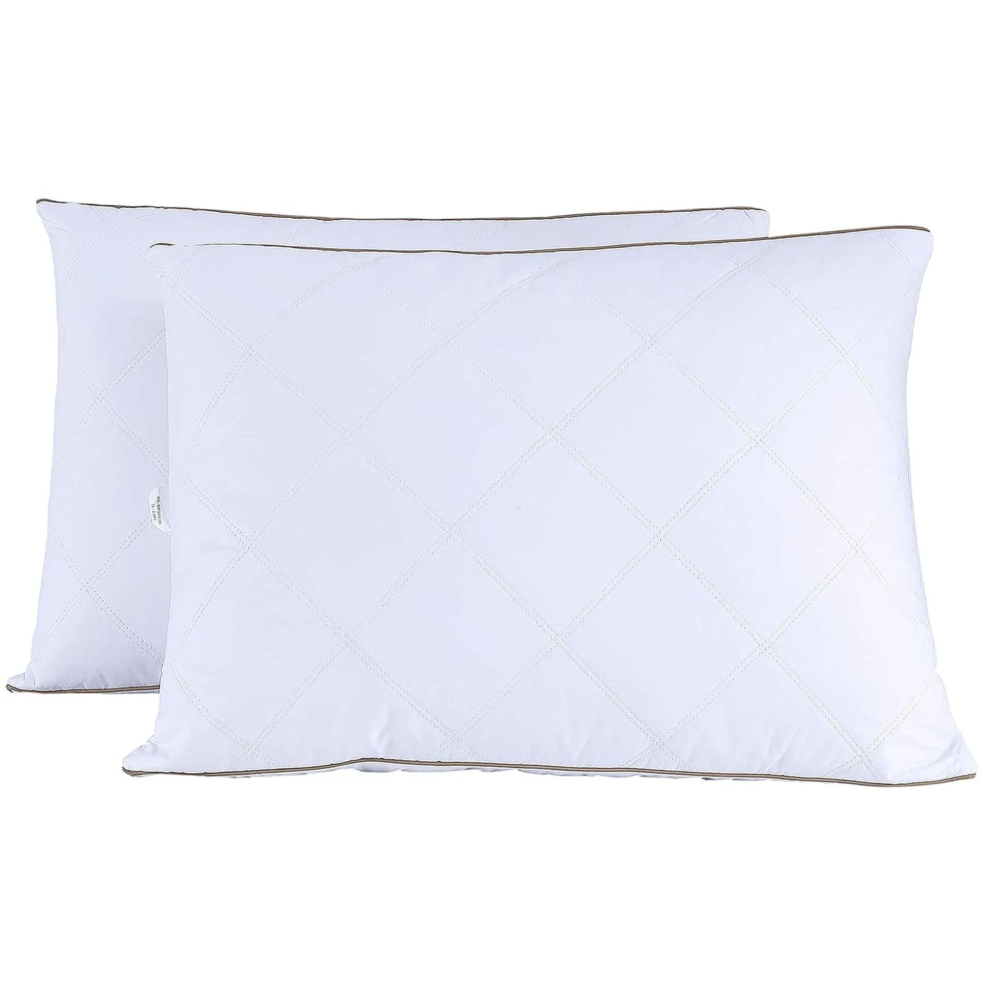 Assure you a refreshed sleep with this goose down feather pillow. The 233 thread count cotton fabric is soft and noiseless. Quilted in diamond pattern, finished with nice stitching and edge piping, which prolong service time. Filled with natural goose down and goose feather, the pillow will support your neck and head gently while sleeping, offering you with a restful sleep. A set includes 2 pillows. Quality sleeping experience for side sleepers, back sleepers and stomach sleepers.