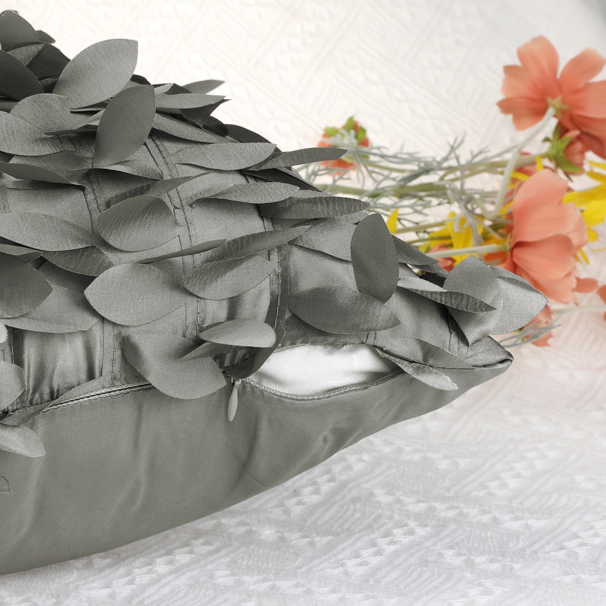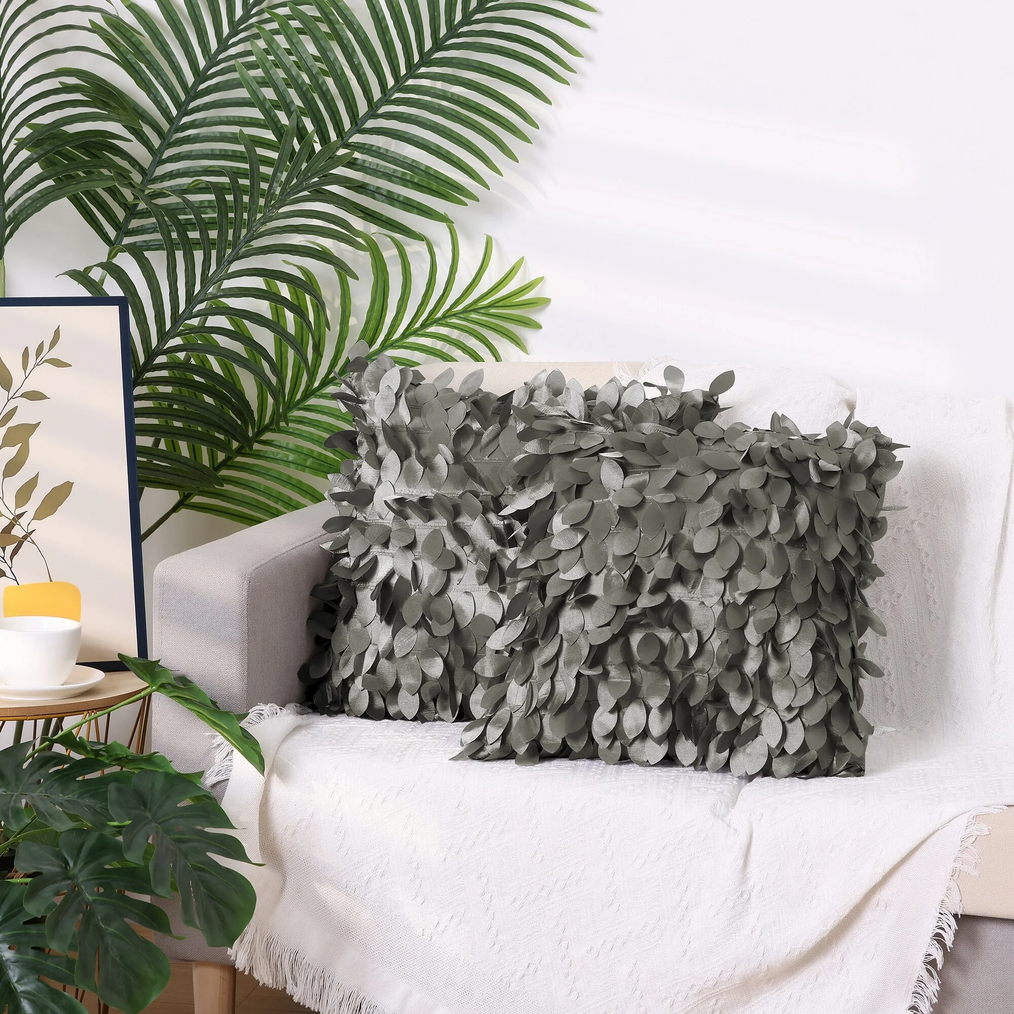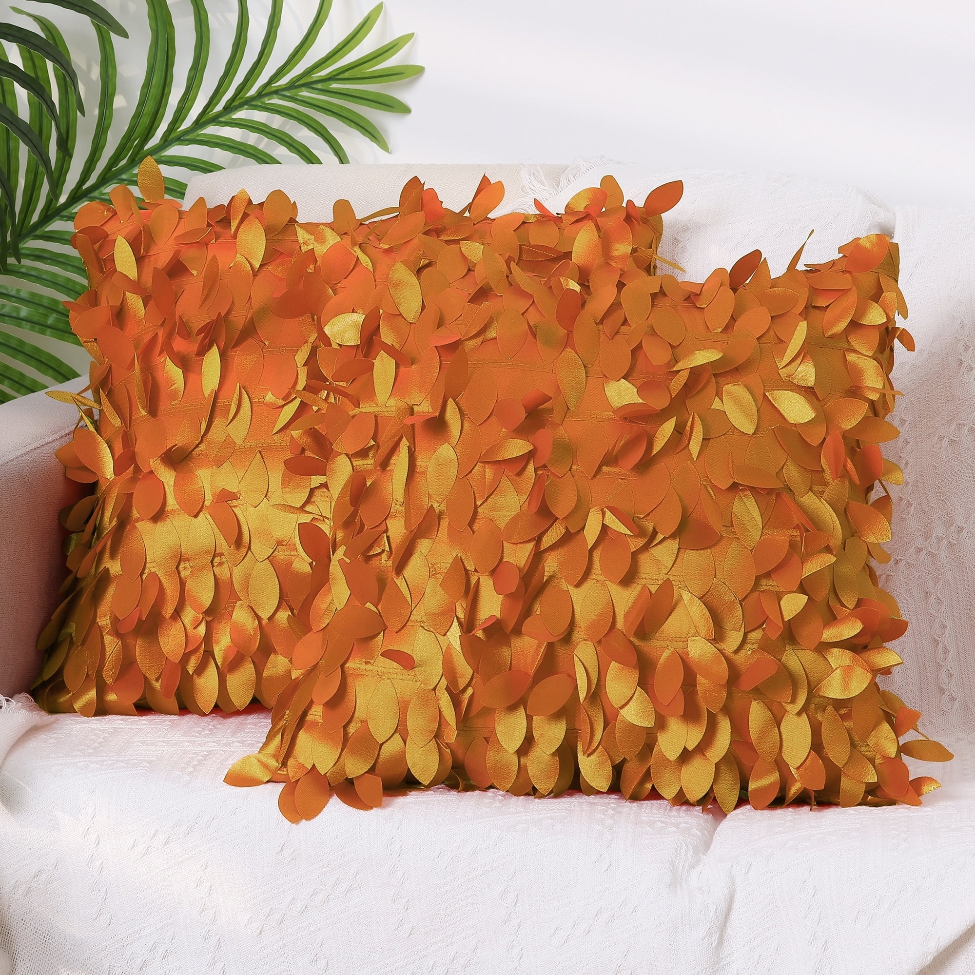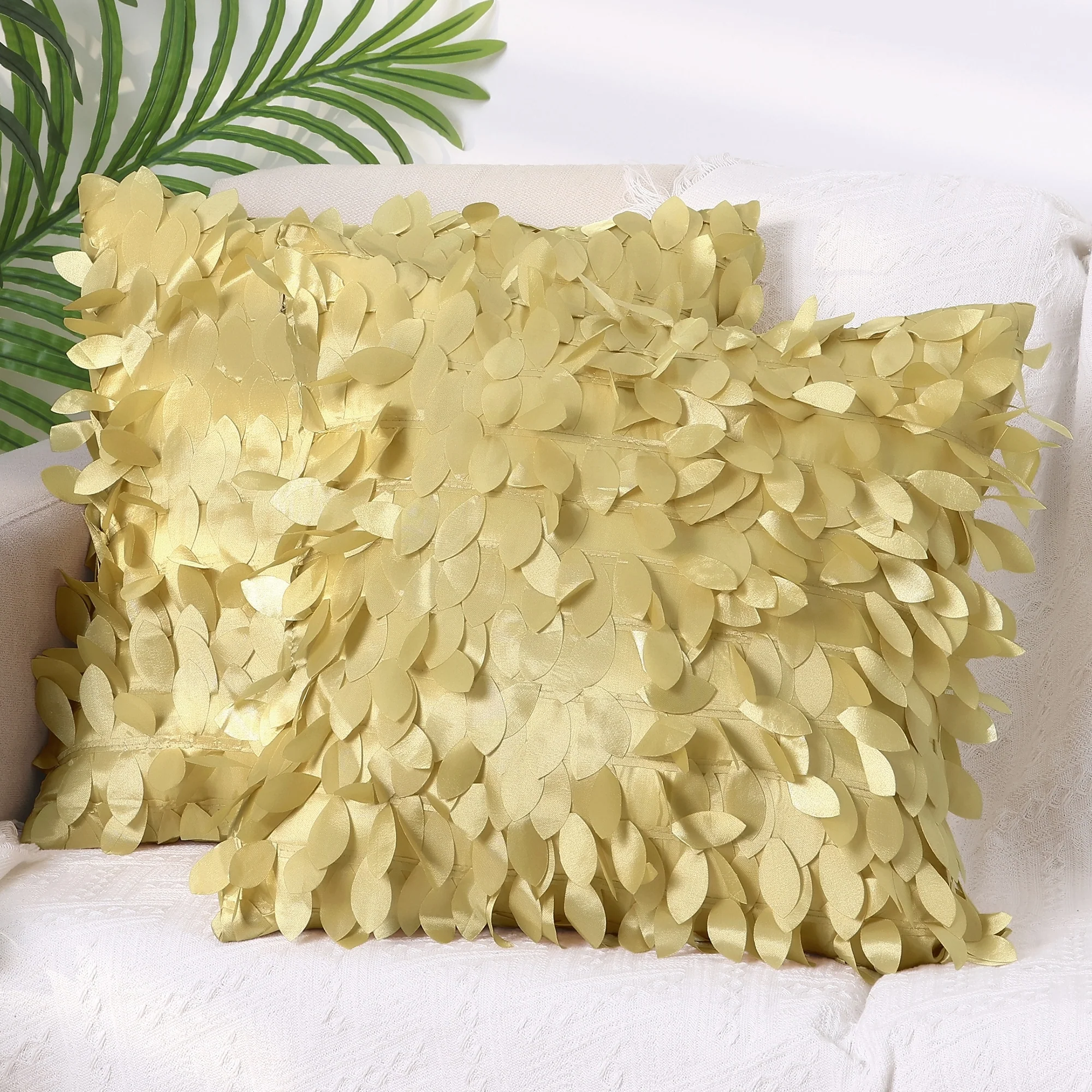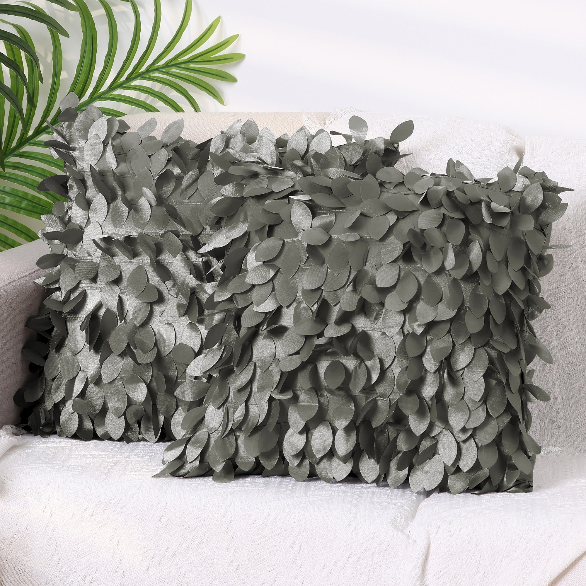 2 Pack Solid Color Throw Pillow Cover, 3D Sequins Leaf Cushion Covers