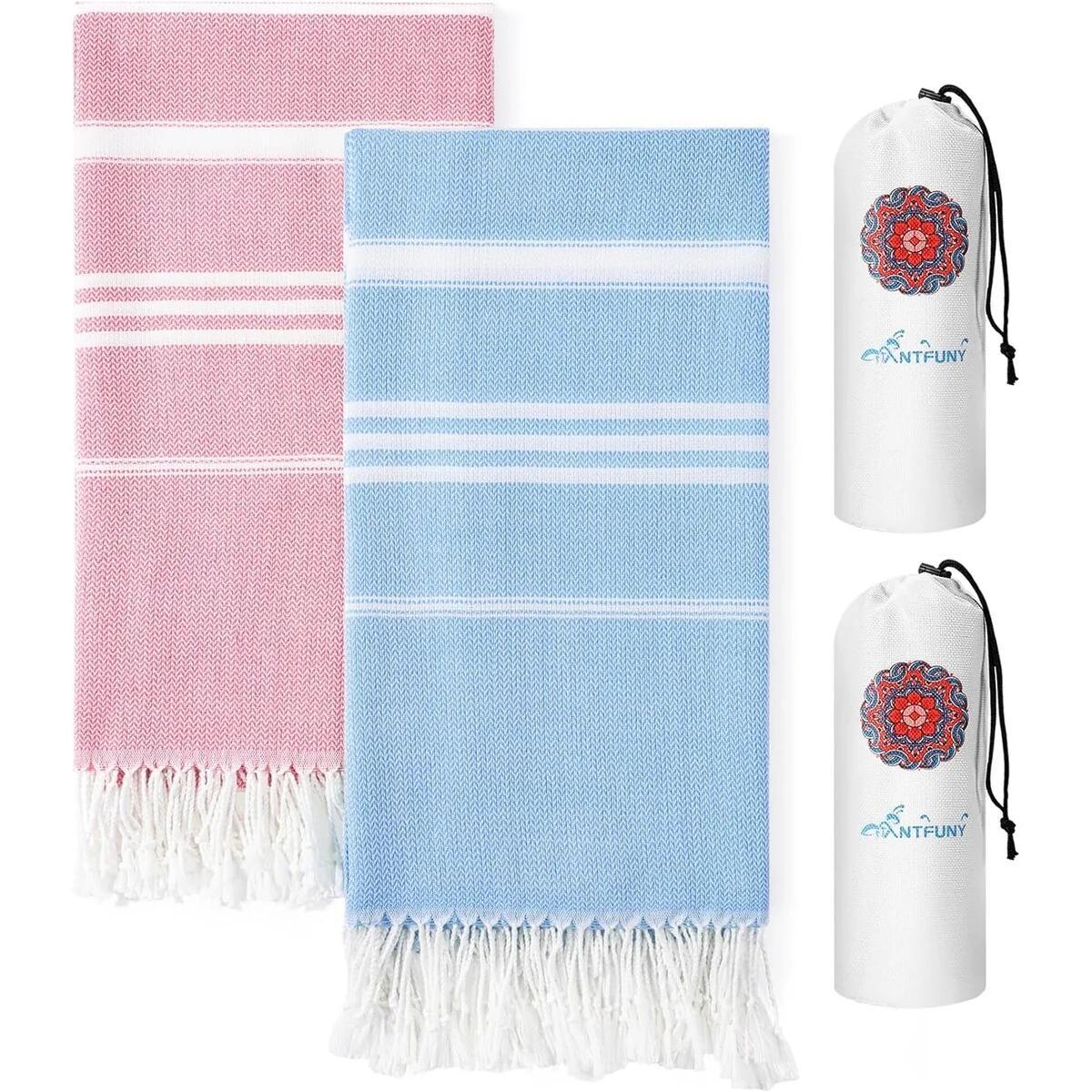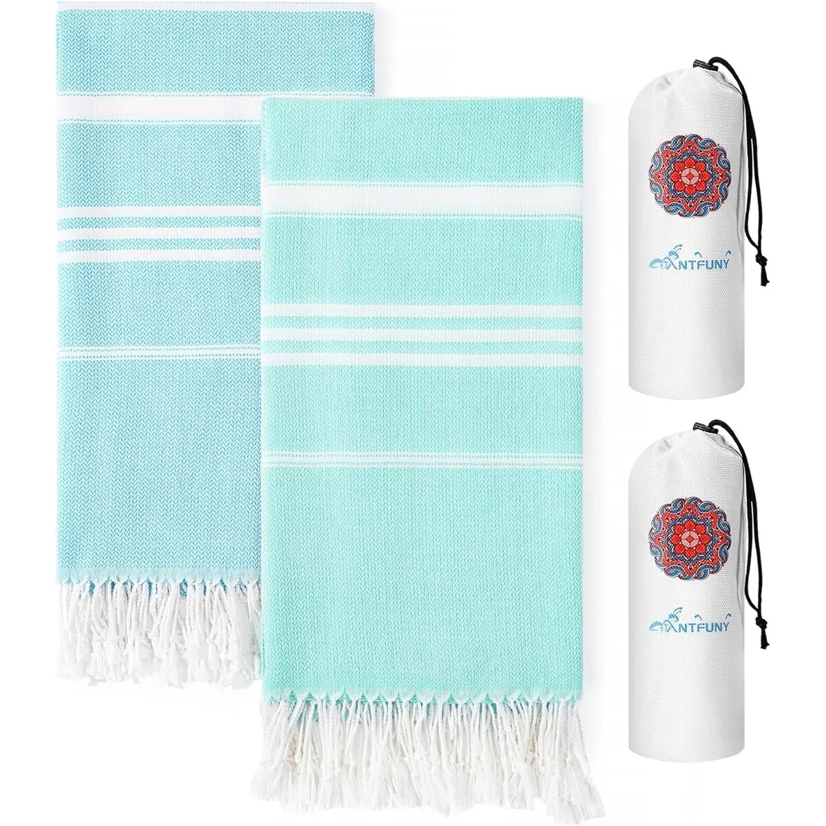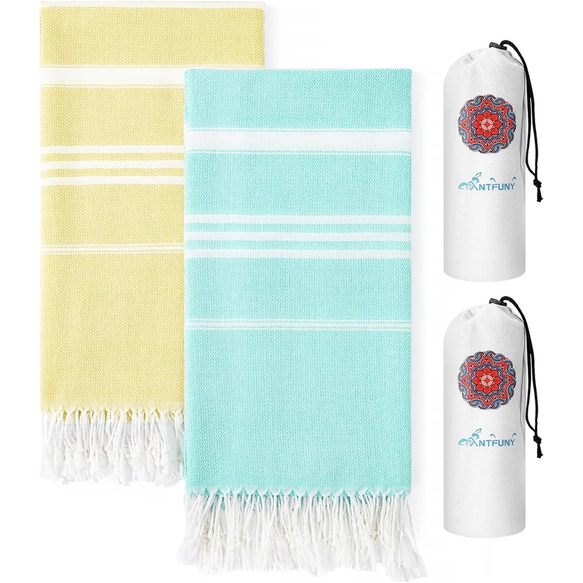 2 Packs of Cotton Turkish Quick Drying Sand Free Super Large Beach Towel Swimming Towel