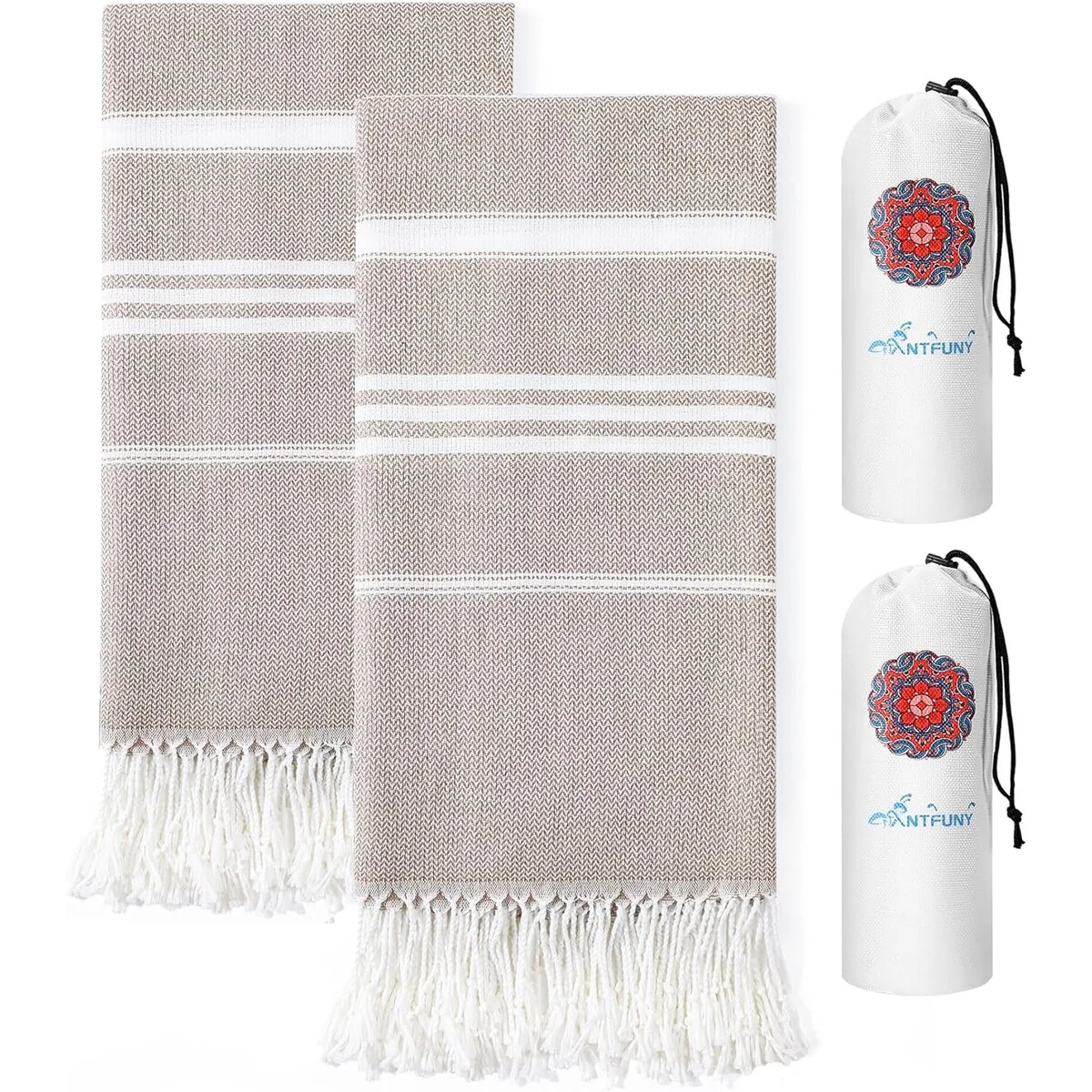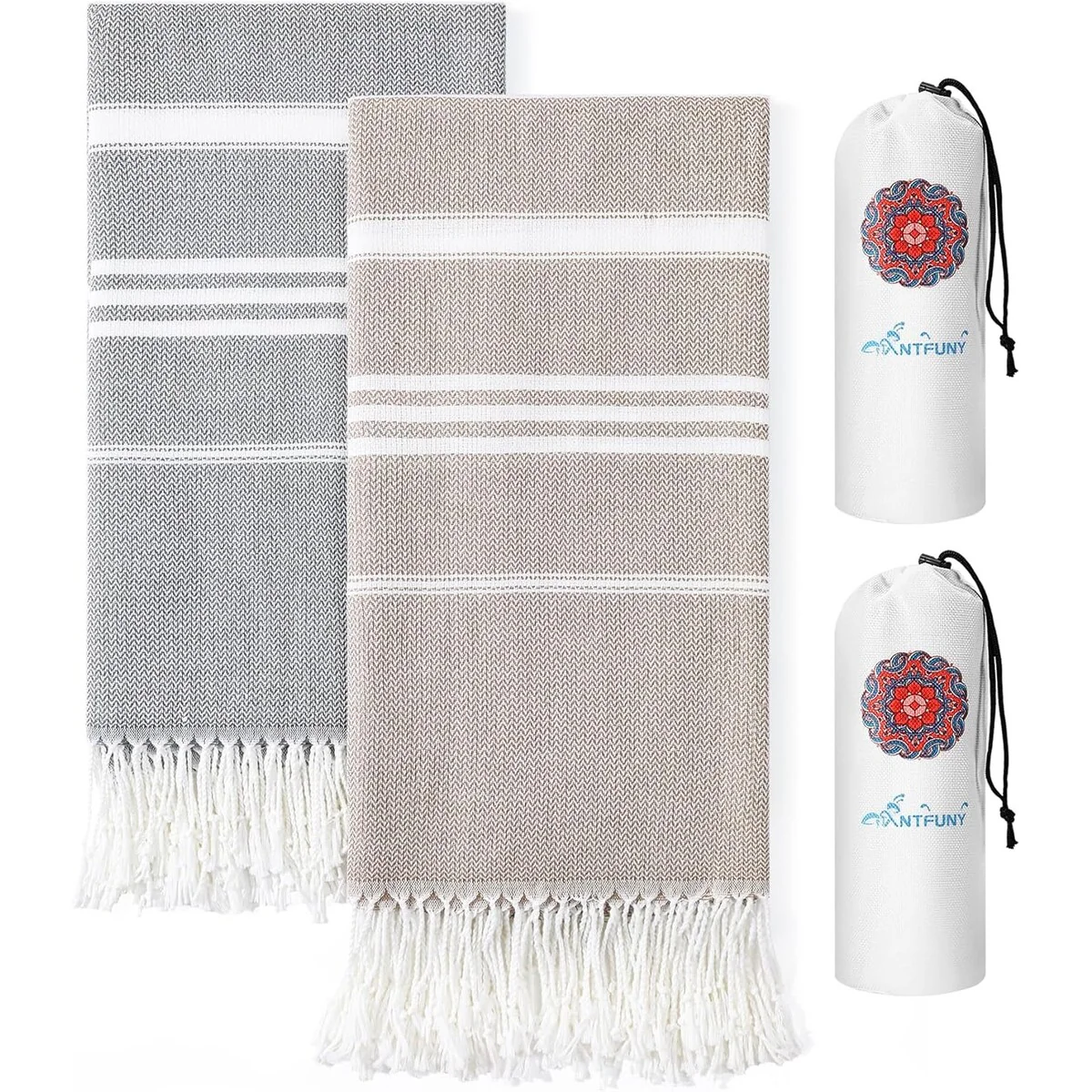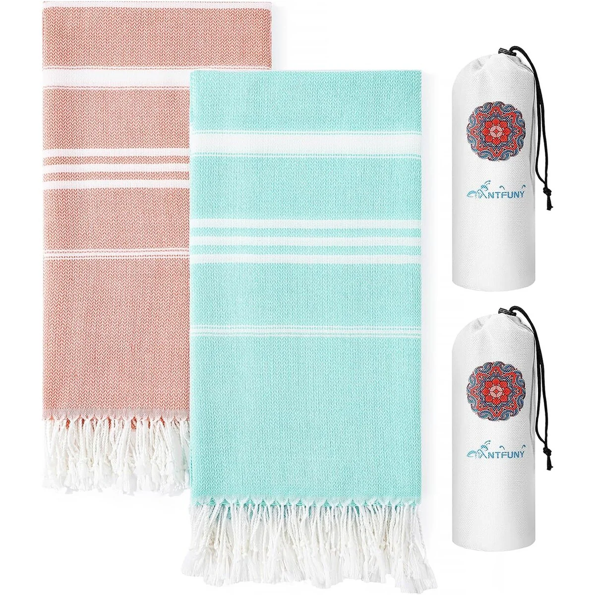 2 Packs of Cotton Turkish Quick Drying Sand Free Super Large Beach Towel Swimming Towel