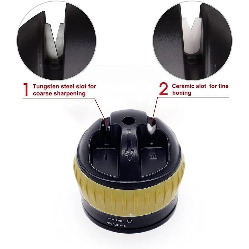 - Suction Cup Base: The suction cup base provides stability and prevents the sharpener from slipping or moving during use, ensuring safe and effective sharpening without the risk of accidents.