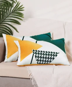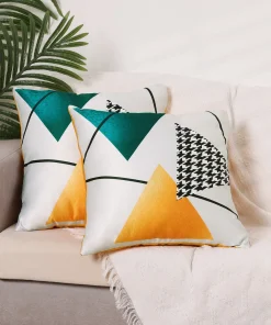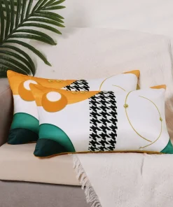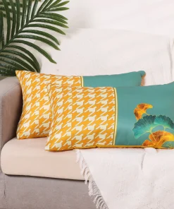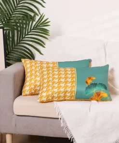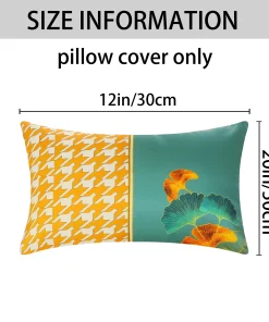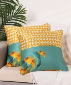 Pattern Design: Throw pillow covers are featured with satin fabric, colorful geometric, gold ginkgo leaves flower pattern.