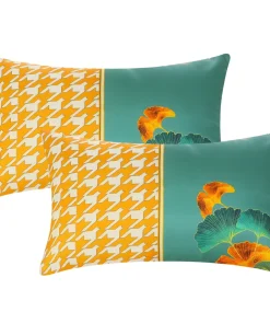 Pattern Design: Throw pillow covers are featured with satin fabric, colorful geometric, gold ginkgo leaves flower pattern.