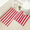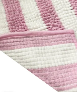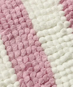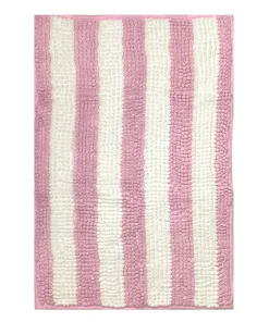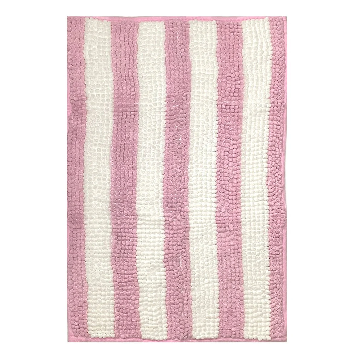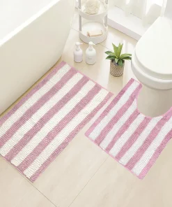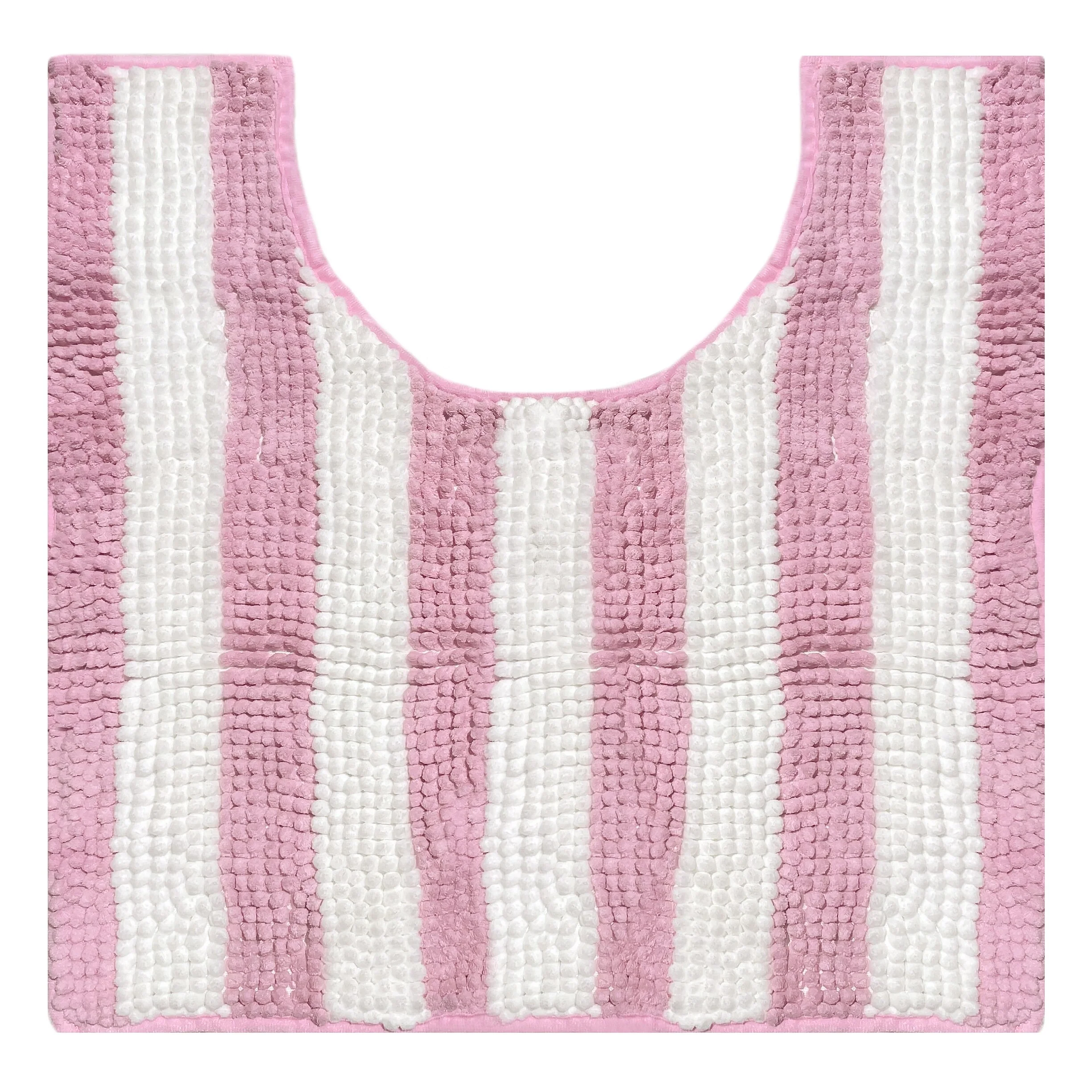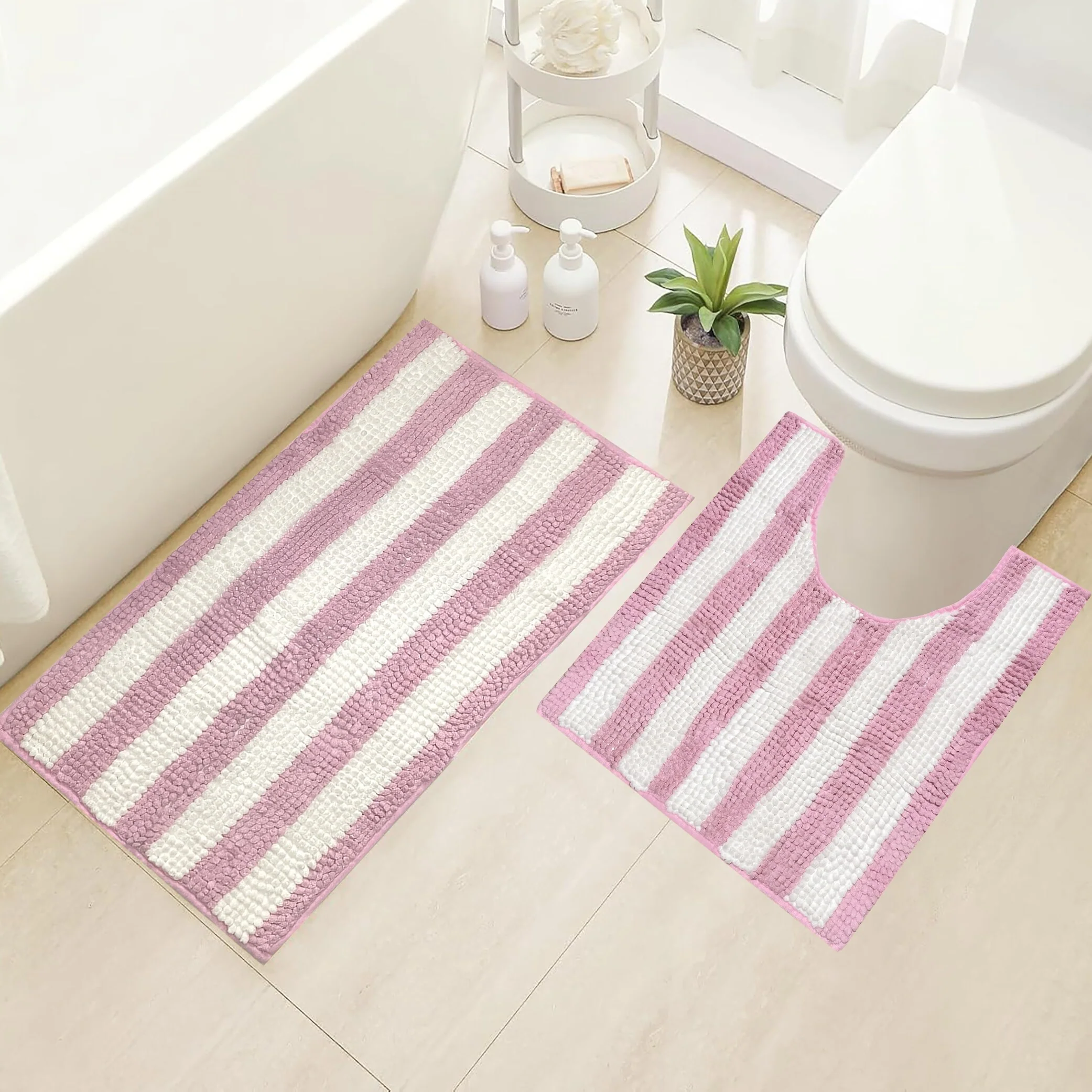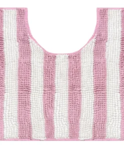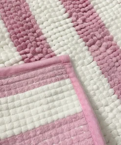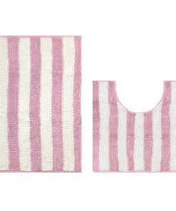 2 Piece Set Pink White Stripe Soft Cozy Plush Chenille Bath Mat Bathroom Rug