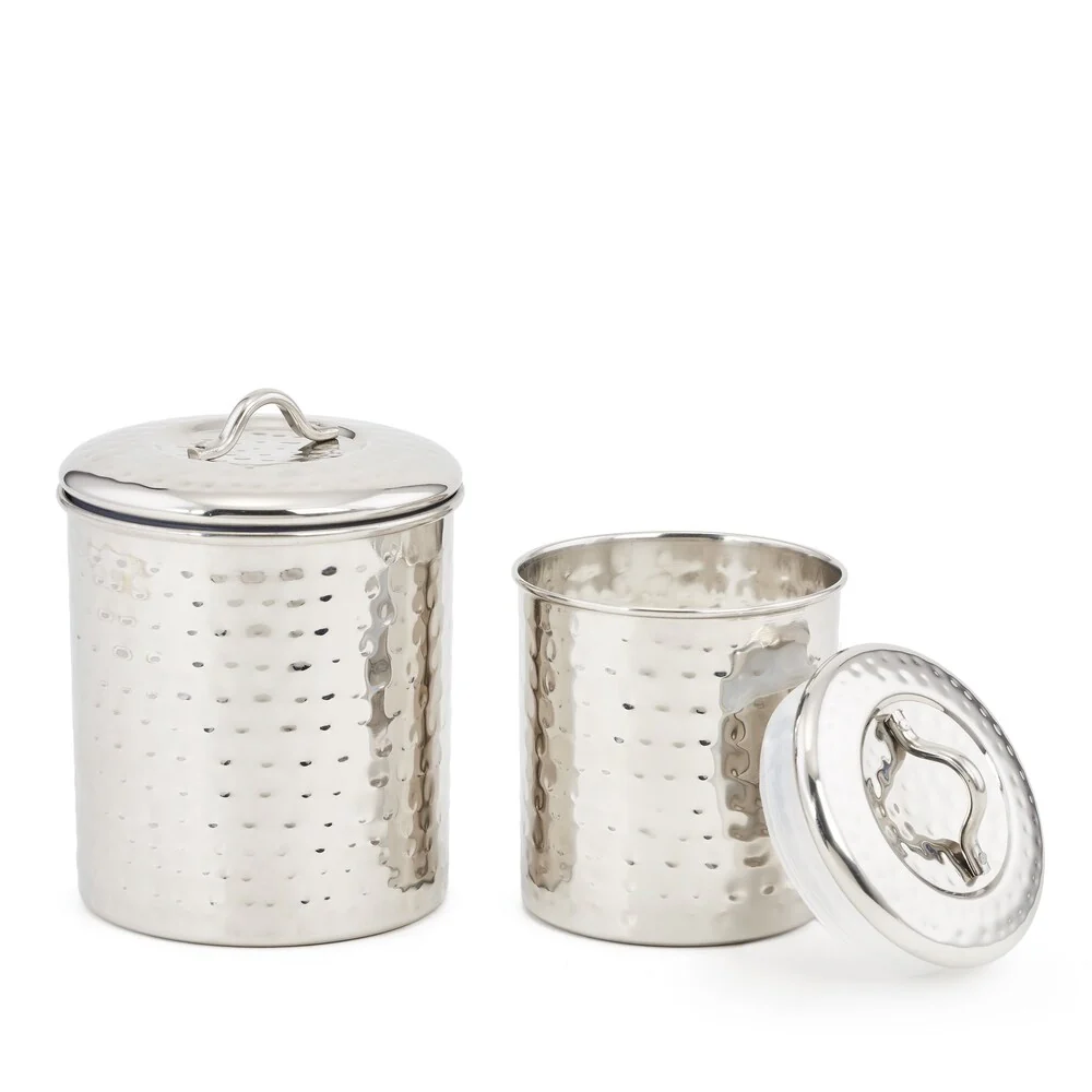 With their hammered finish and generous storage capacity, these Stainless Steel canisters are the perfect countertop storage solution. Fresh Seal cover technology keeps stored items fresh and safe. Set of 2 Canisters � 1.5 Qt.& 1 Qt. capacities.