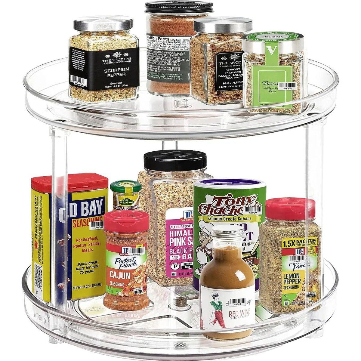 - 2-Tier Design: Includes two tiers or levels for storing a variety of spices, herbs, or small kitchen items, maximizing vertical storage and saving counter space.