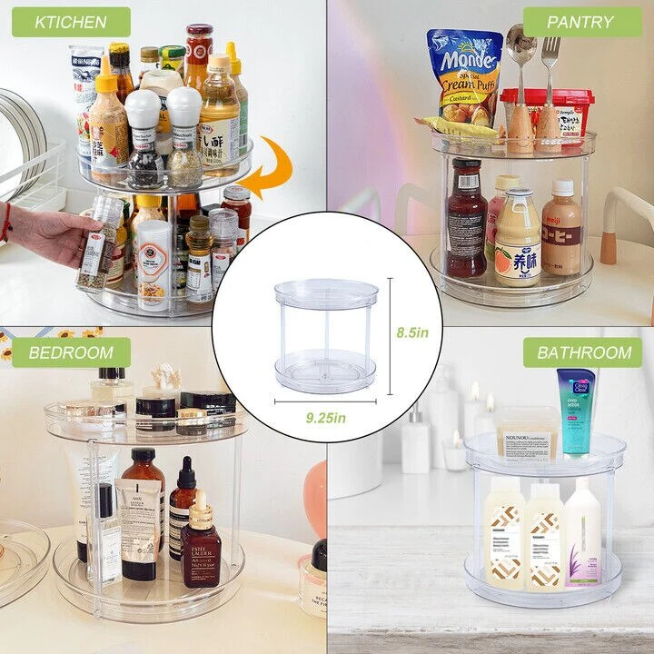 - Easy to Reach: The 2-tier design ensures that items stored on the lazy susan are easily visible and accessible. Quickly select and take out the contents from inside, making it a practical solution for organized storage.