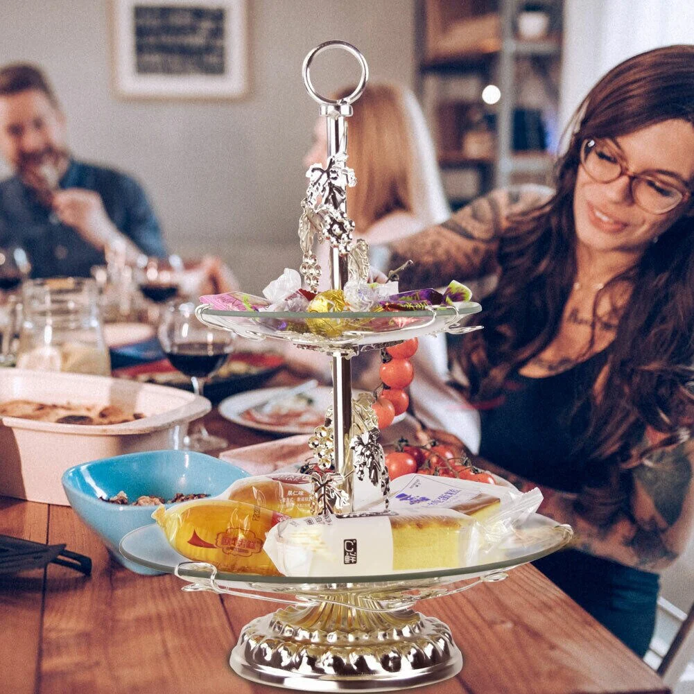- This fruit plate features a unique design with metal grapevines wrapped around the column, adding an elegant and luxurious touch to the plain tray.