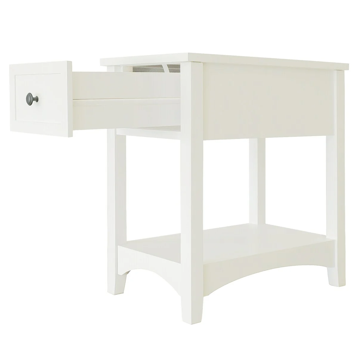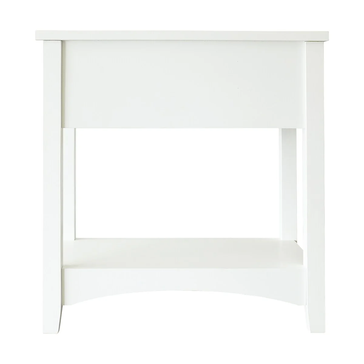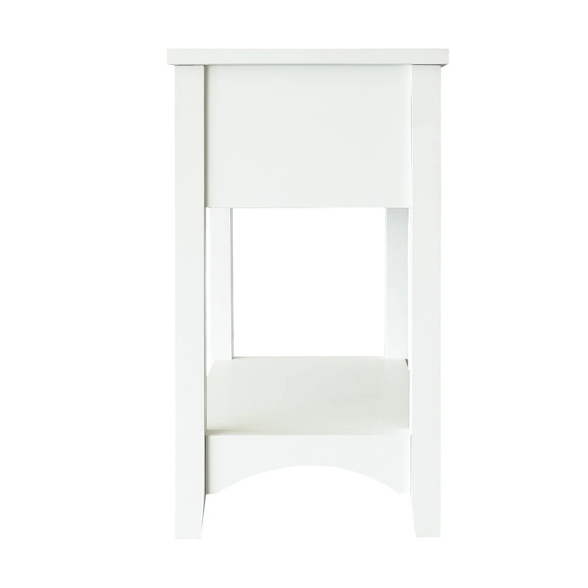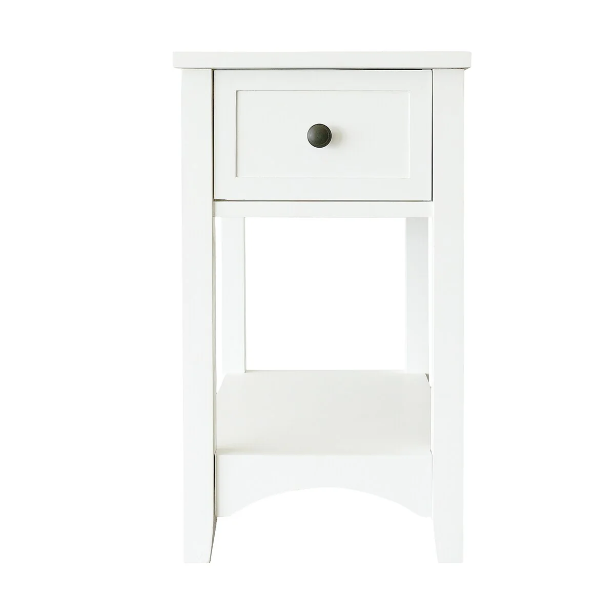 -      2-Tier Side End Table with Storage Shelf and Drawer, Narrow Nightstand for Living Room Bedroom Small Spaces, Solid Wood Legs, Ivory White   Â