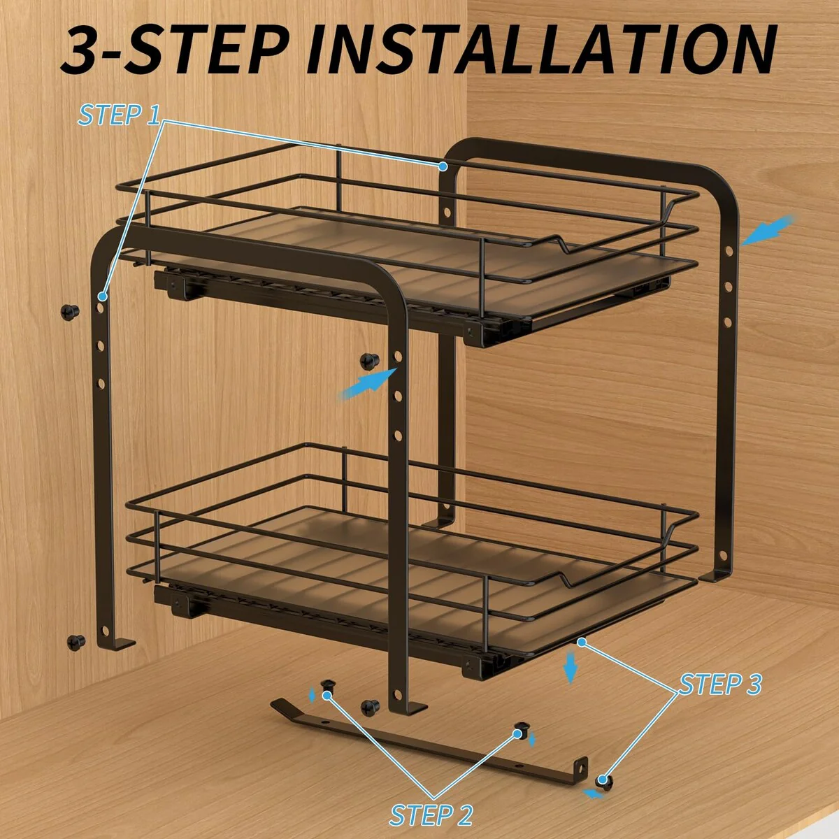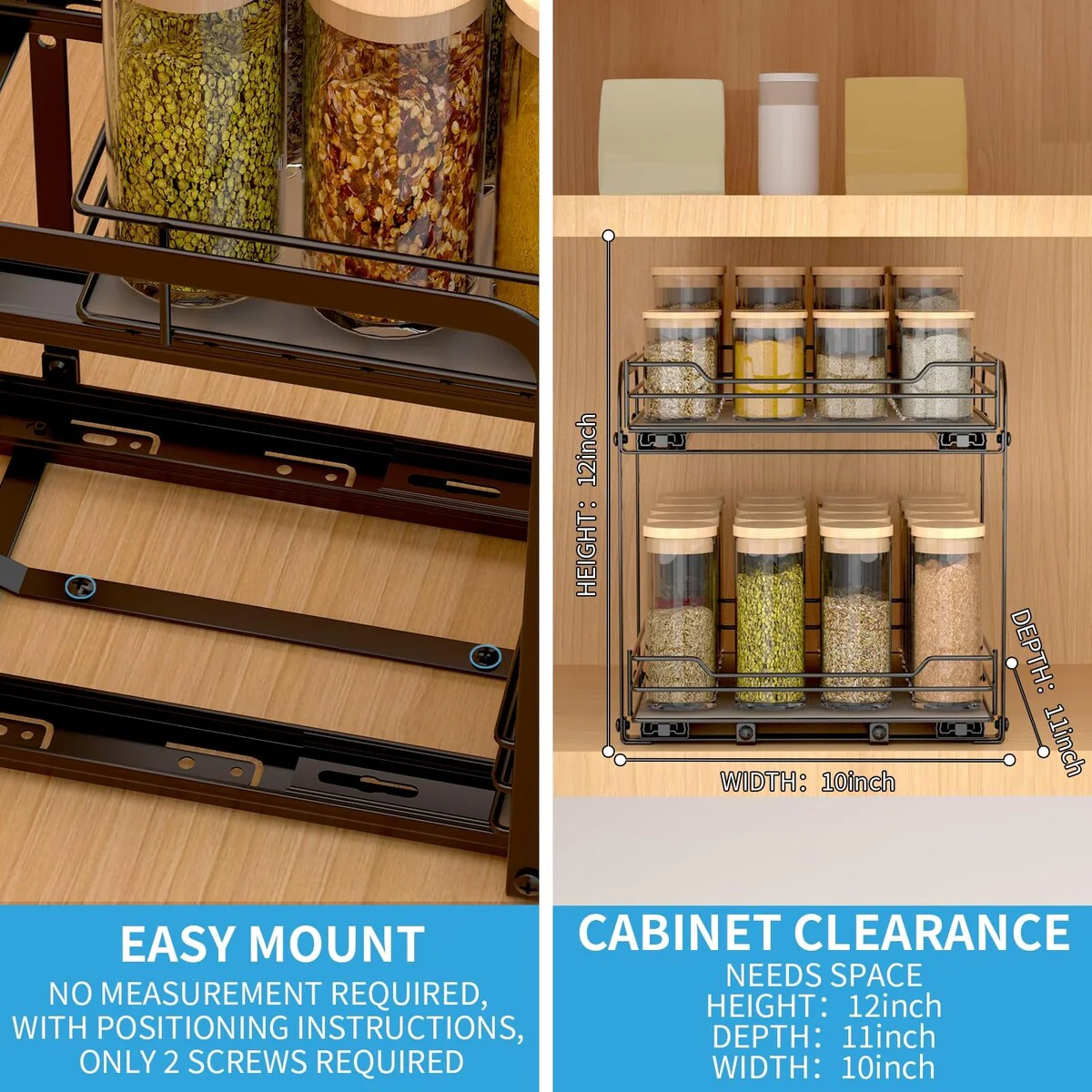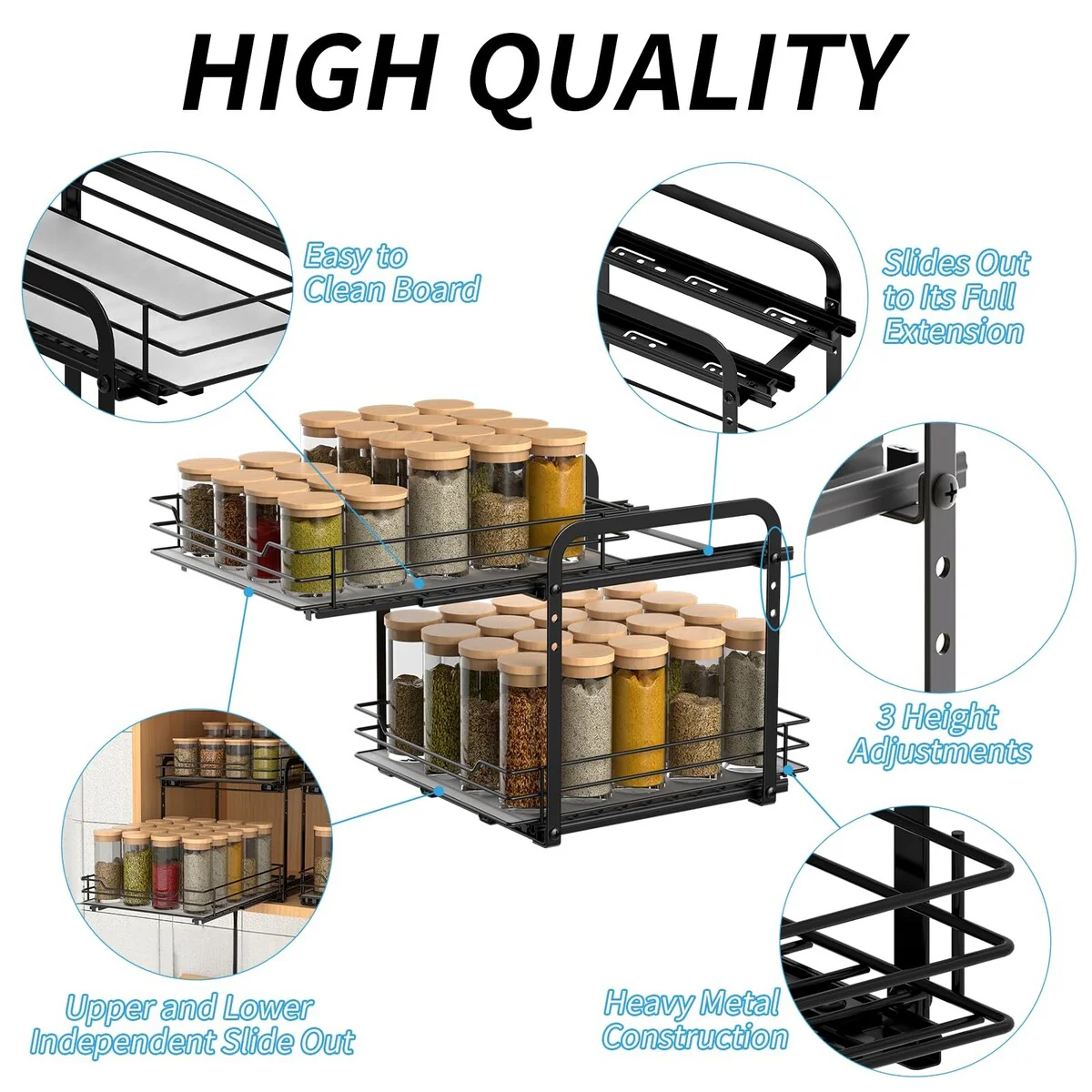 2-Tier Spice Rack, Pull Out Cabinet Organizer Spice Racks Height Adjustable Heavy Duty Metal Basket