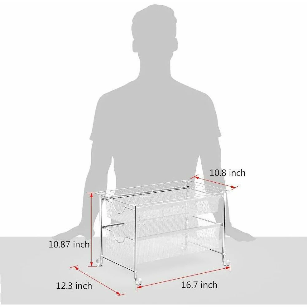 2 Tier Stackable Sliding Double Basket Cabinet Organizers, Silver