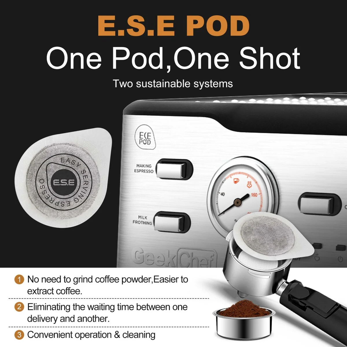 ESE (Easy Serve Espresso) pod filter and steam wand with grip tap included