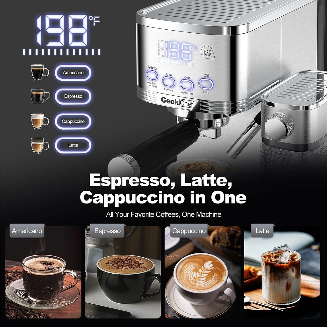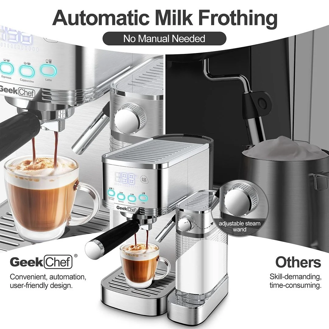 Elevate Your Home Barista Experience with Geek Chef’s Espresso and Cappuccino Machine!Â