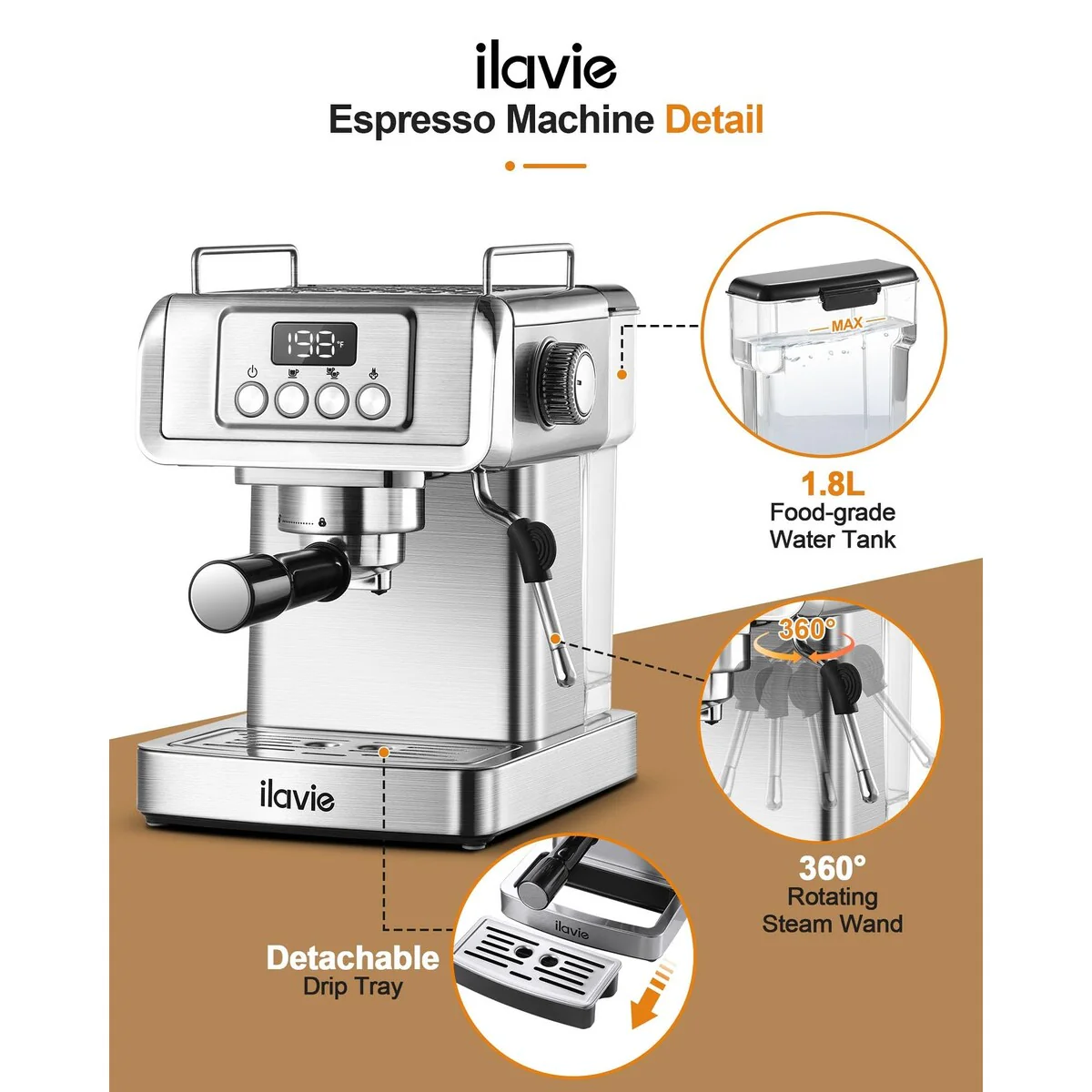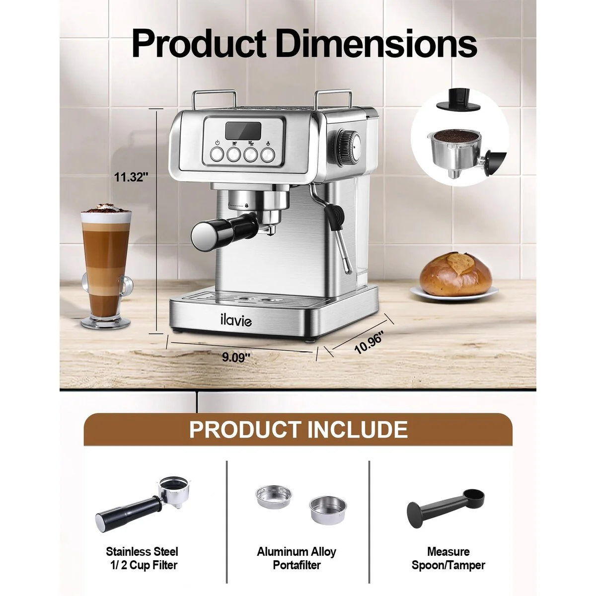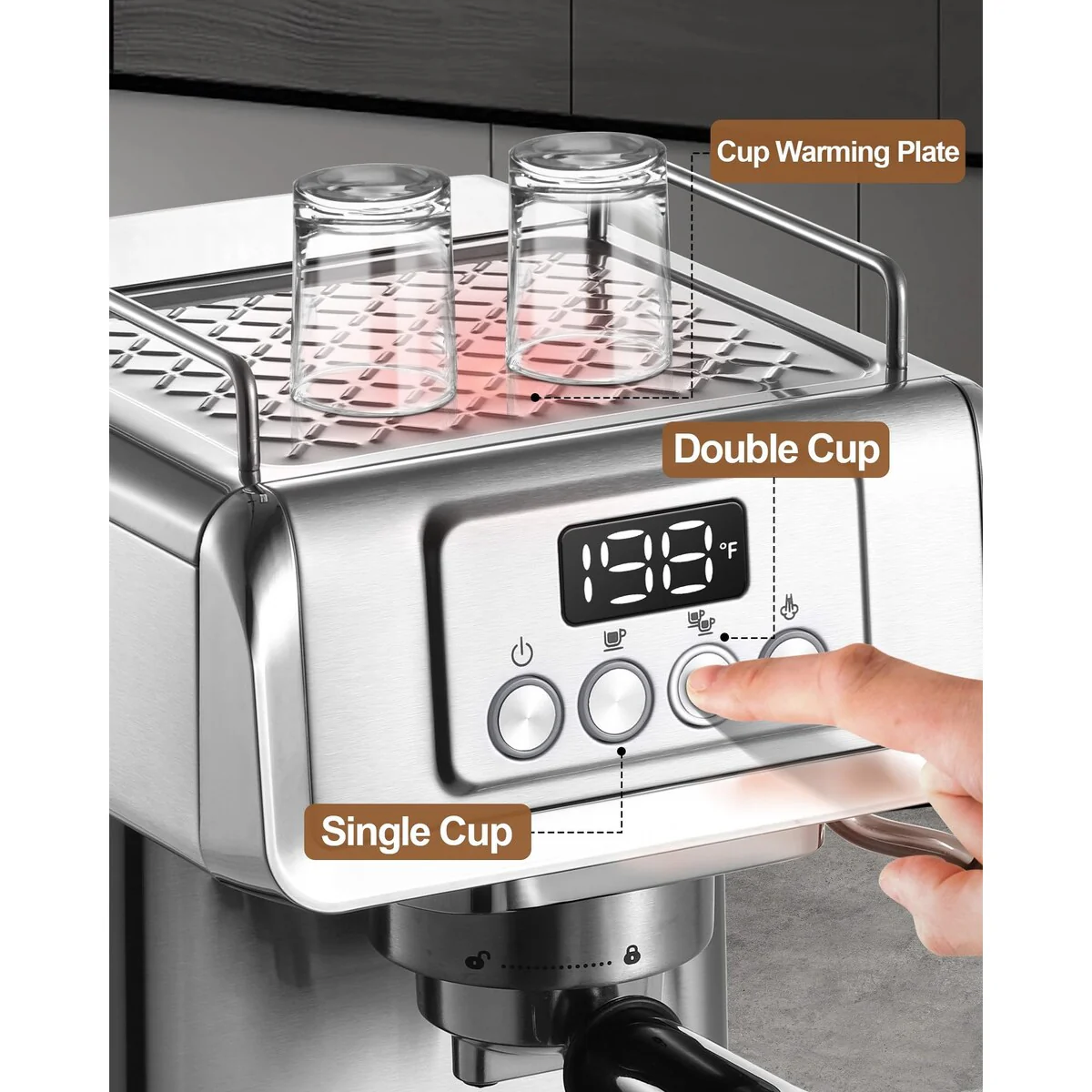 20 Bar Espresso Machine, Stainless Steel for Cappuccino, Latte, Espresso Maker for Home with Milk Steamer, 1.8L Water Tank