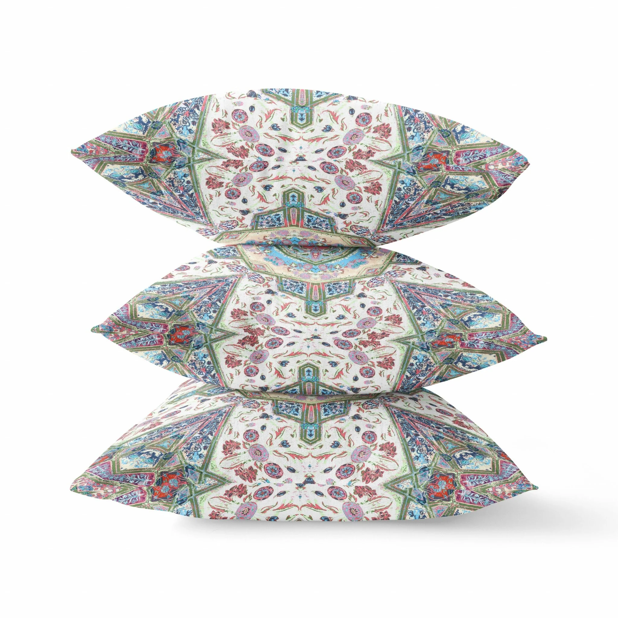 Wrapped in modern elegance with a bohemian flair, this Cream Pink Boho Flower Indoor Outdoor Throw Pillow is sure to spruce up your living space with its eclectic pattern and palette. The intriguing floral medallion in shades of aqua blue, pastel pink, green, and cream make this spectacular piece of décor one-of-a-kind in the room. Made of soft but premium quality broadcloth fabric, it is not only durable to use in indoor and outdoor settings but also ideal for everyday usage while maintaining its colorization. This blown and closed pillow is filled with a polyester fiber insert, giving it a luxurious cushiony feel and a fluffy nature for optimal comfort when you lean on it. If you want a subtle yet eye-catching element in your living room, opt for this lovely throw pillow that’s suitable for a range of modern, contemporary, and traditional décor. 20" x 20" x 5"