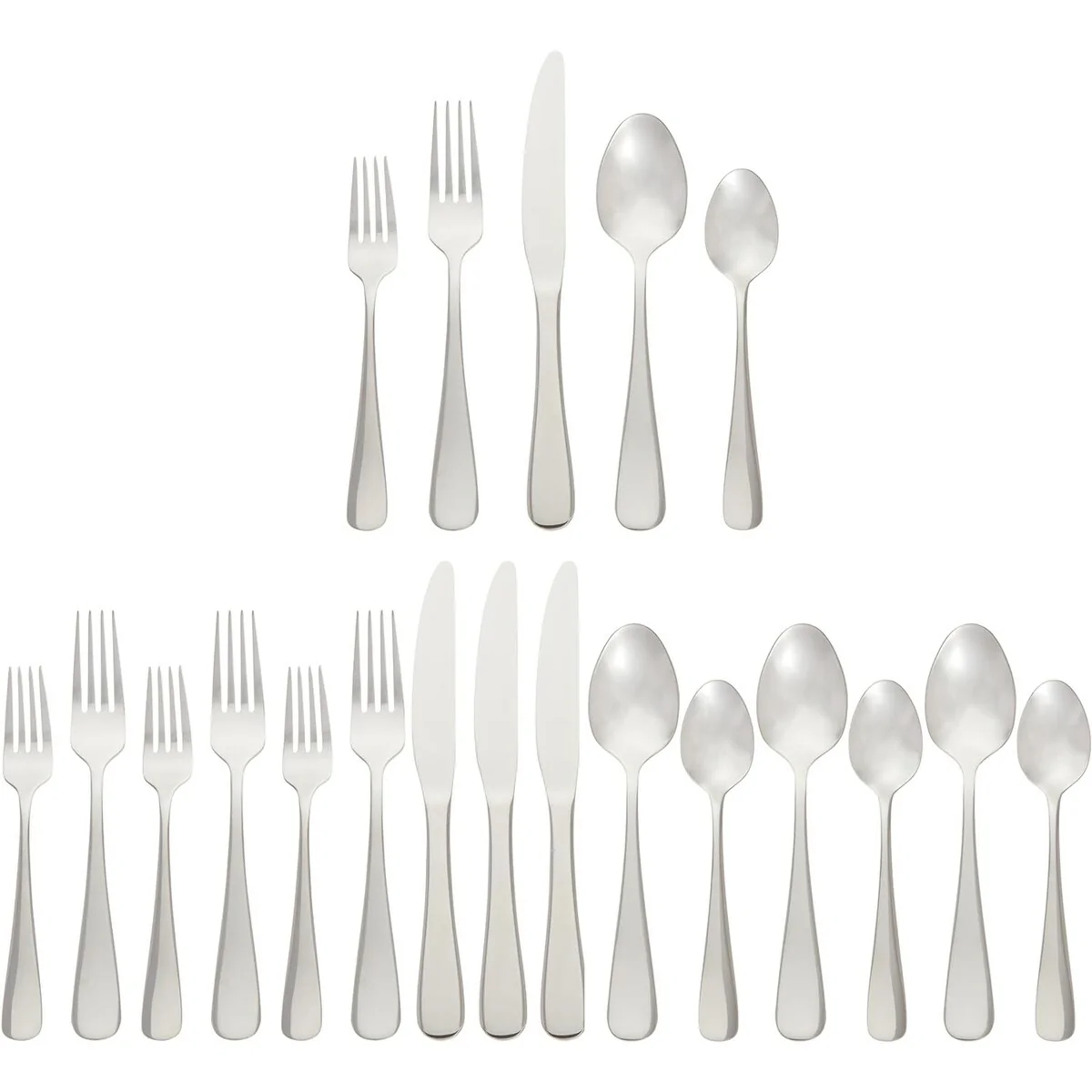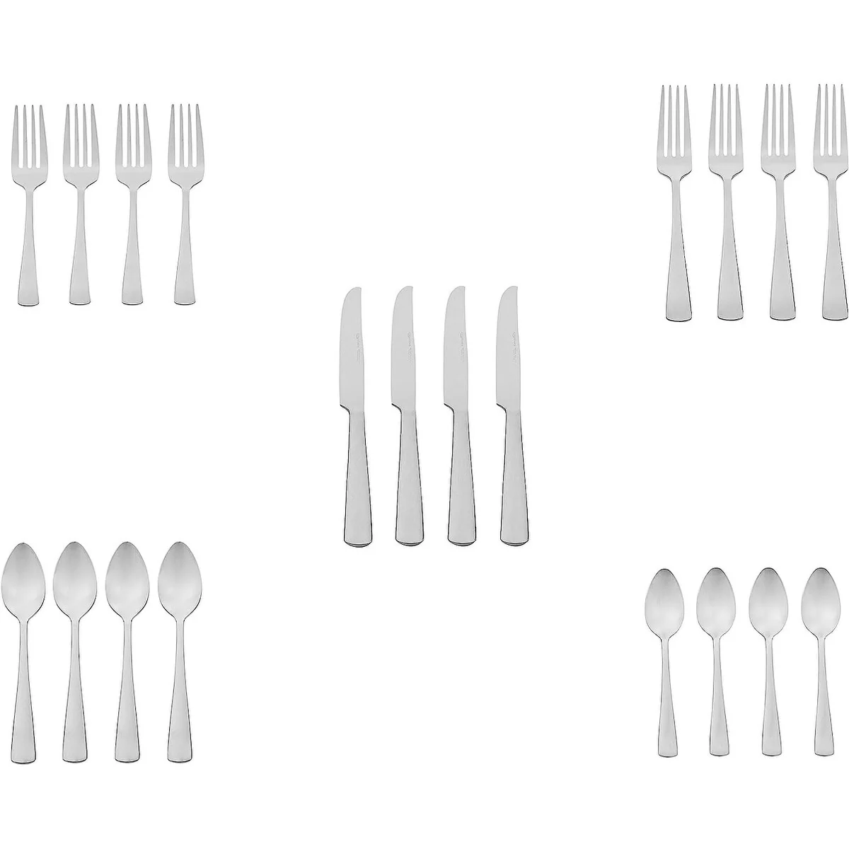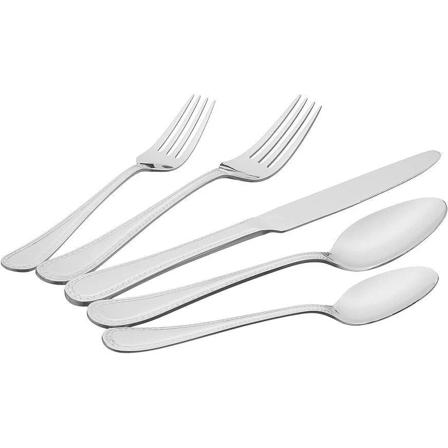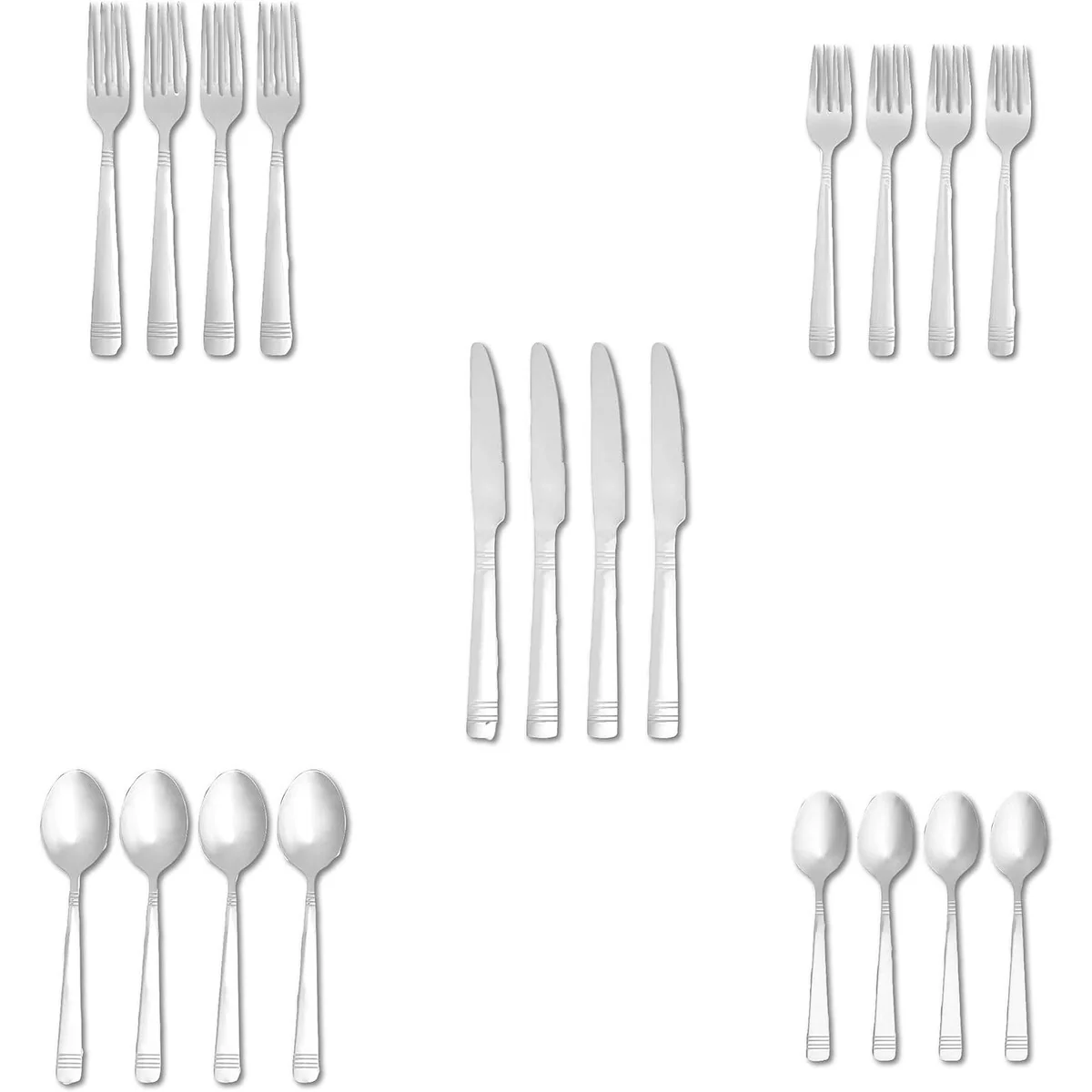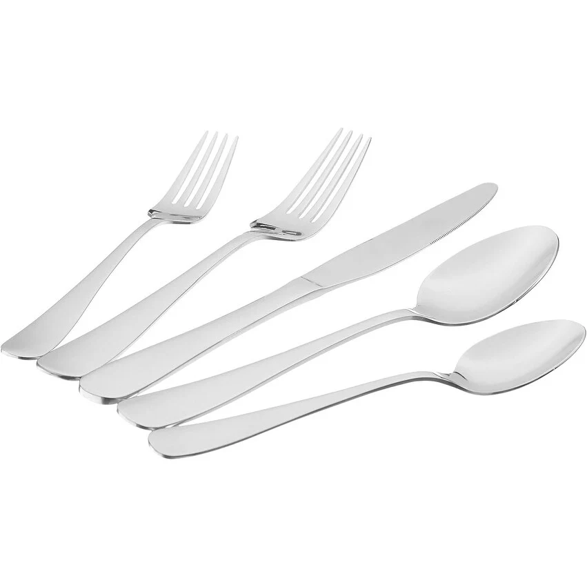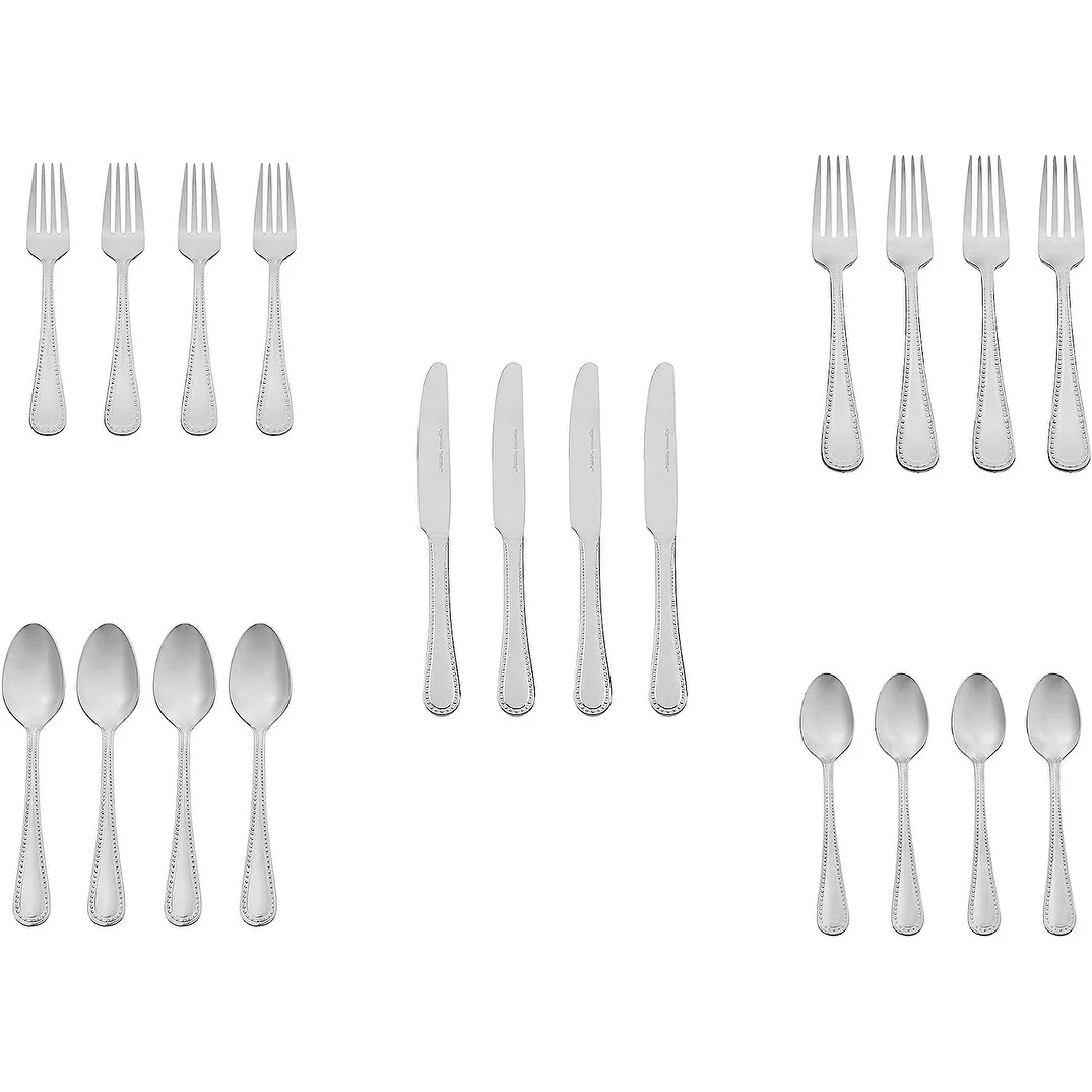 - 20-piece flatware set includes (4) 5-piece place settings, each with a salad fork, dinner fork, place knife, soup spoon, and teaspoon; ideal for everyday use or special occasions