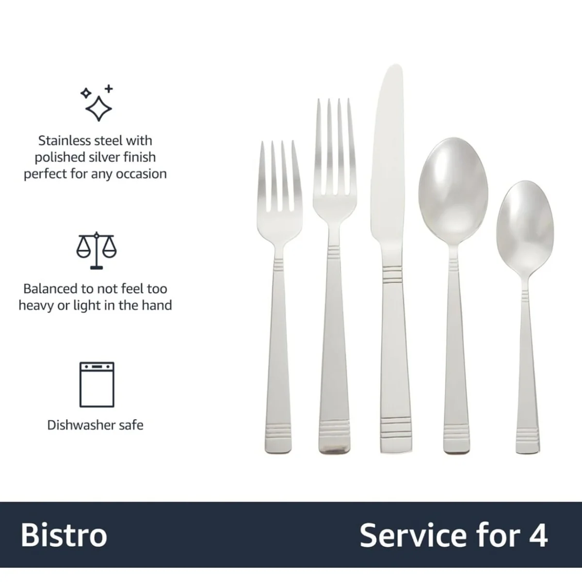 20-Piece Stainless Steel Bistro Flatware Set, Service for 4