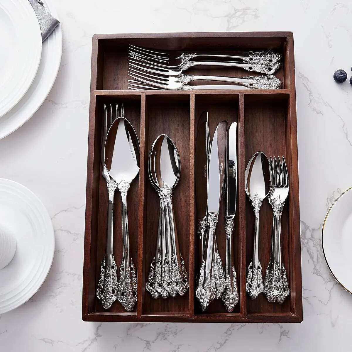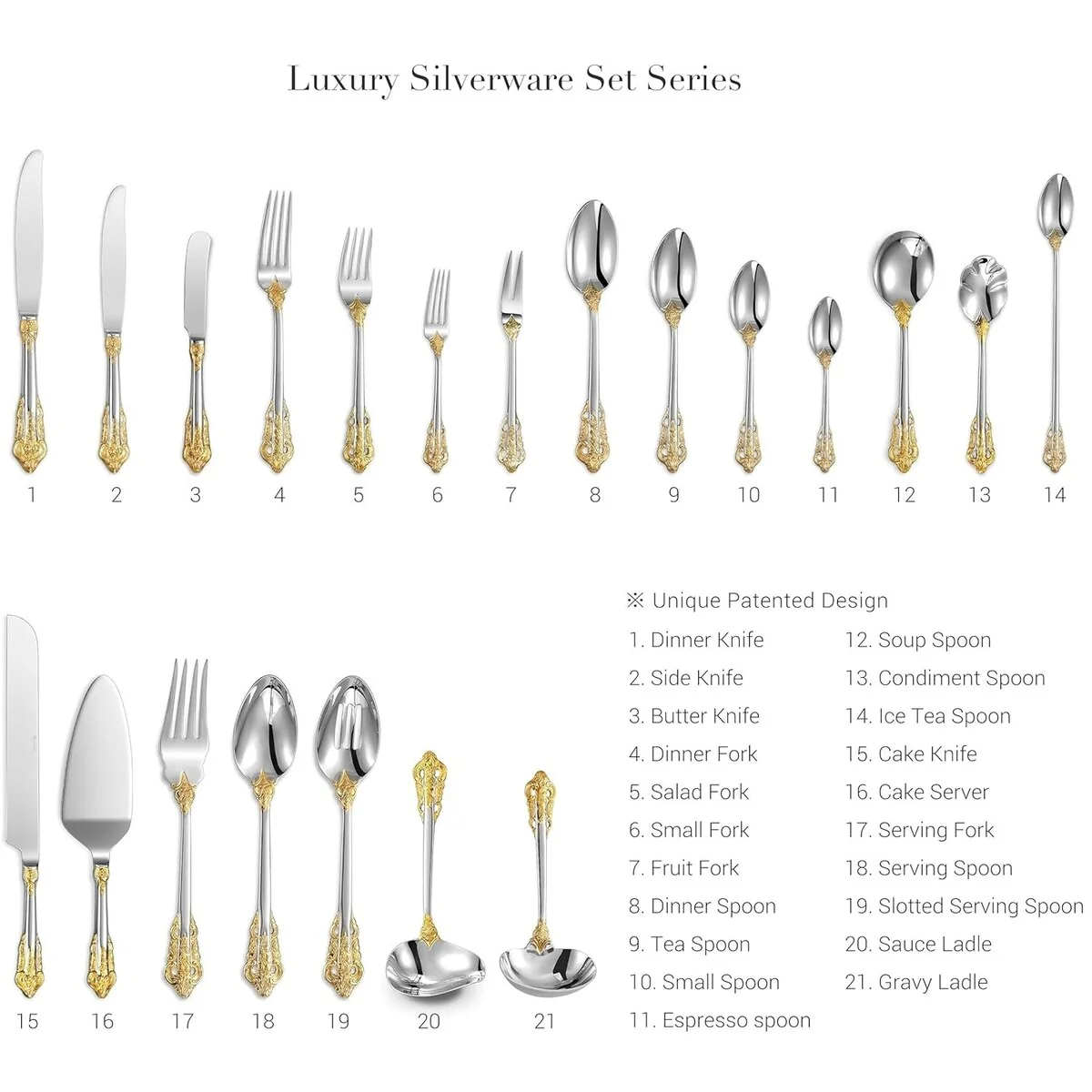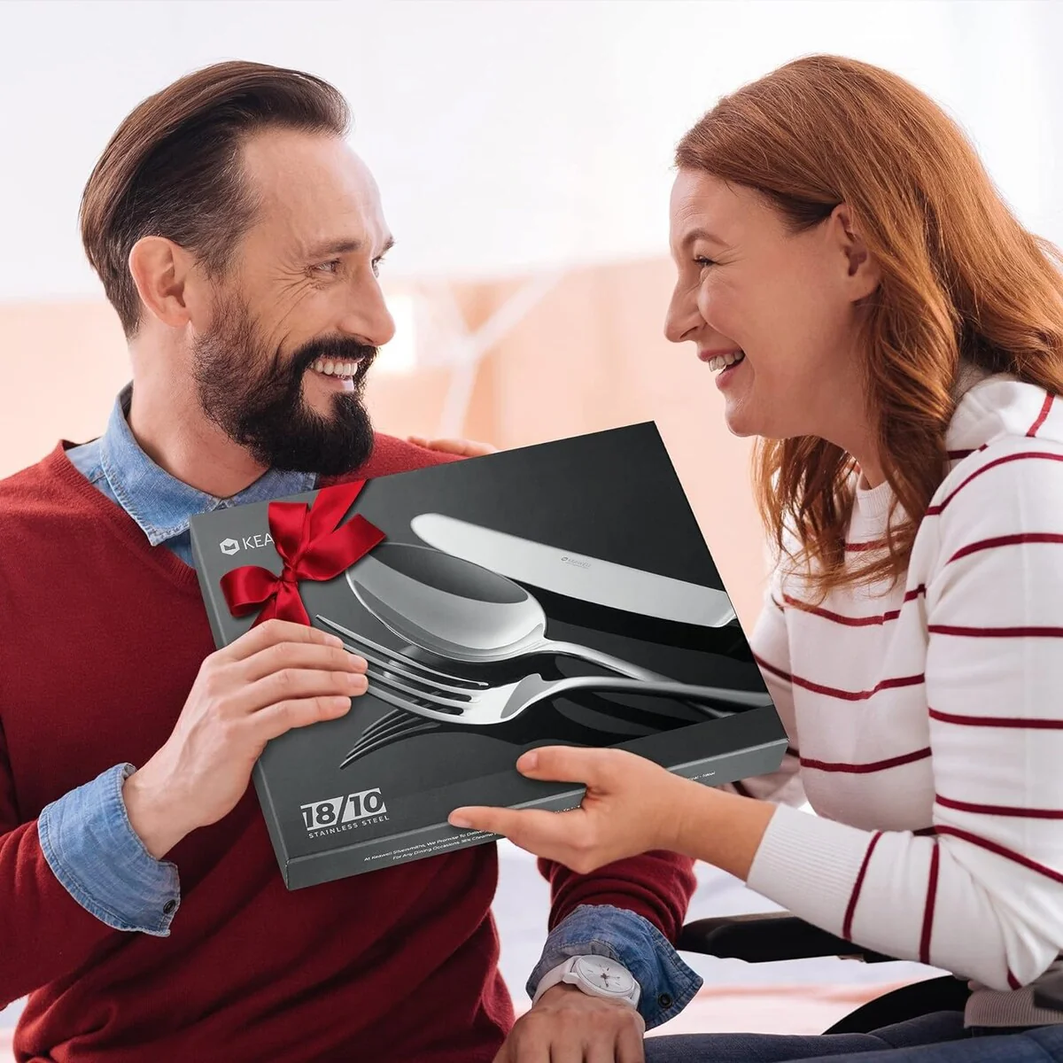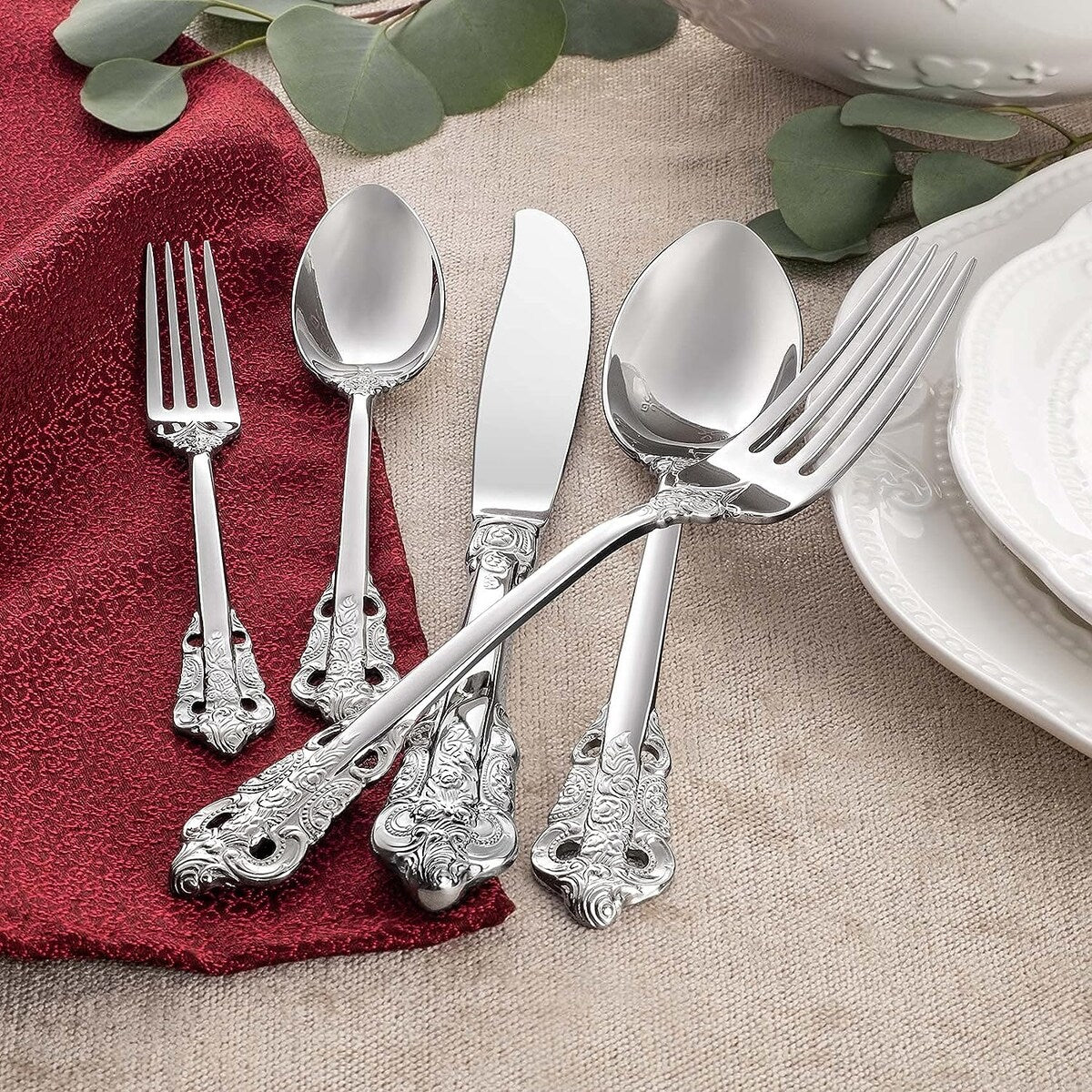 - High-luster finish, Elegant upscale contemporary-looking silverware set. Perfect for any finer occasion, an outstanding gift for the couple.