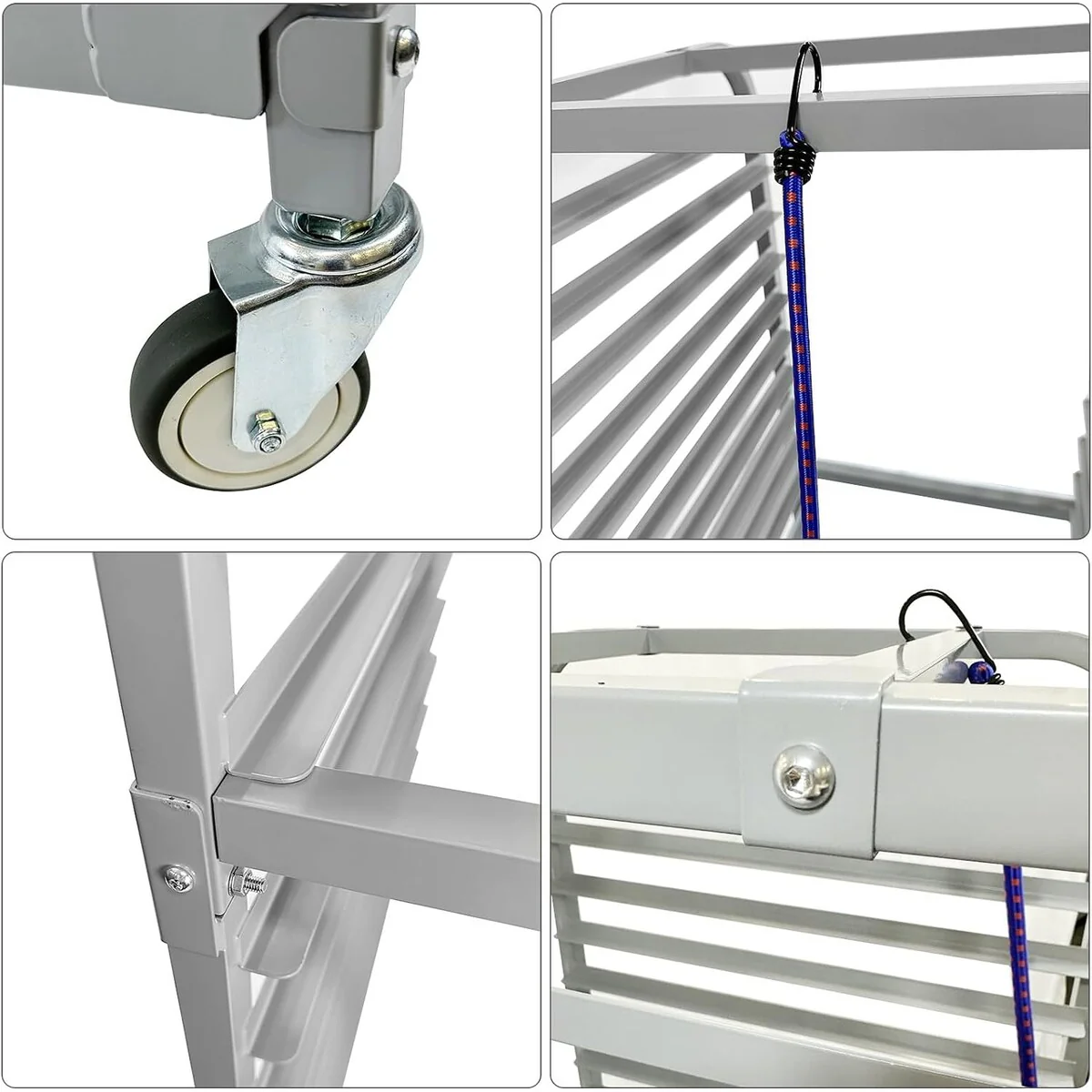 20 Tiers Large Capacity – 20-tier bakery rack can hold up to 20 sheet pans or 40 1/2-size bread trays at a time. The bakery cooling rack provides you with sufficient space to accommodate baked goods.