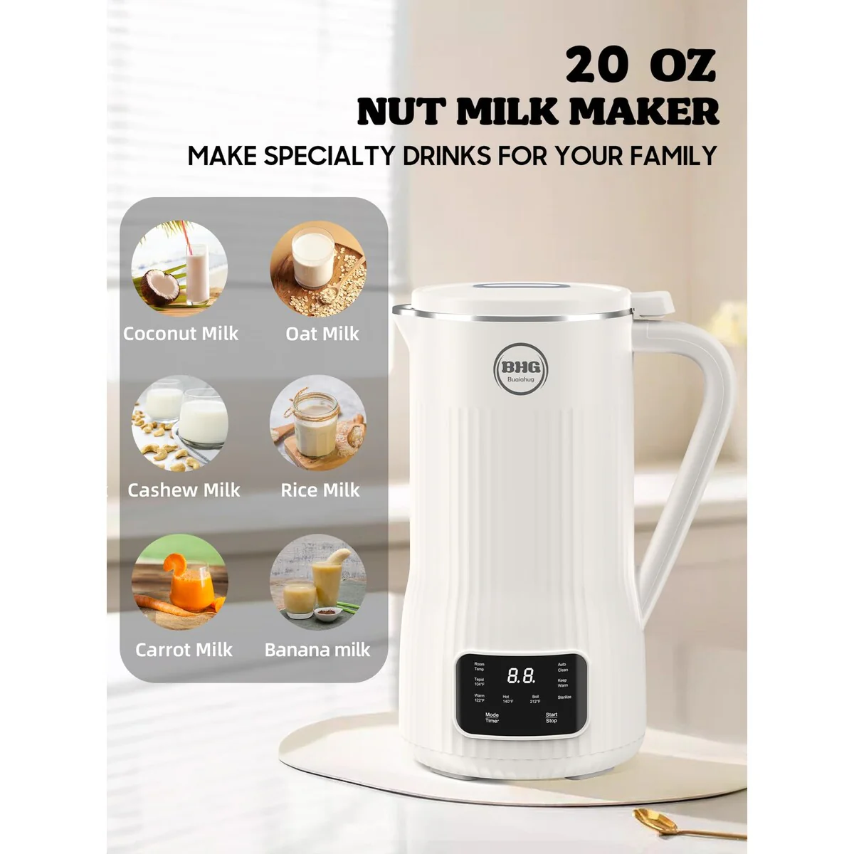 DAIRY-FREE 20OZ NUT MILK MACHINE – This nut milk maker whips up 20 oz (600 ml) of delicious plant-based milk in mere minutes, using nuts, seeds, grains, and beans as its canvas. got you covered. From prin-packed soy milk to smooth, refreshing smoothies, the options are endless. Beyond breakfast, this versatile machine conjures up hot or cold vegan milk for any time of day.