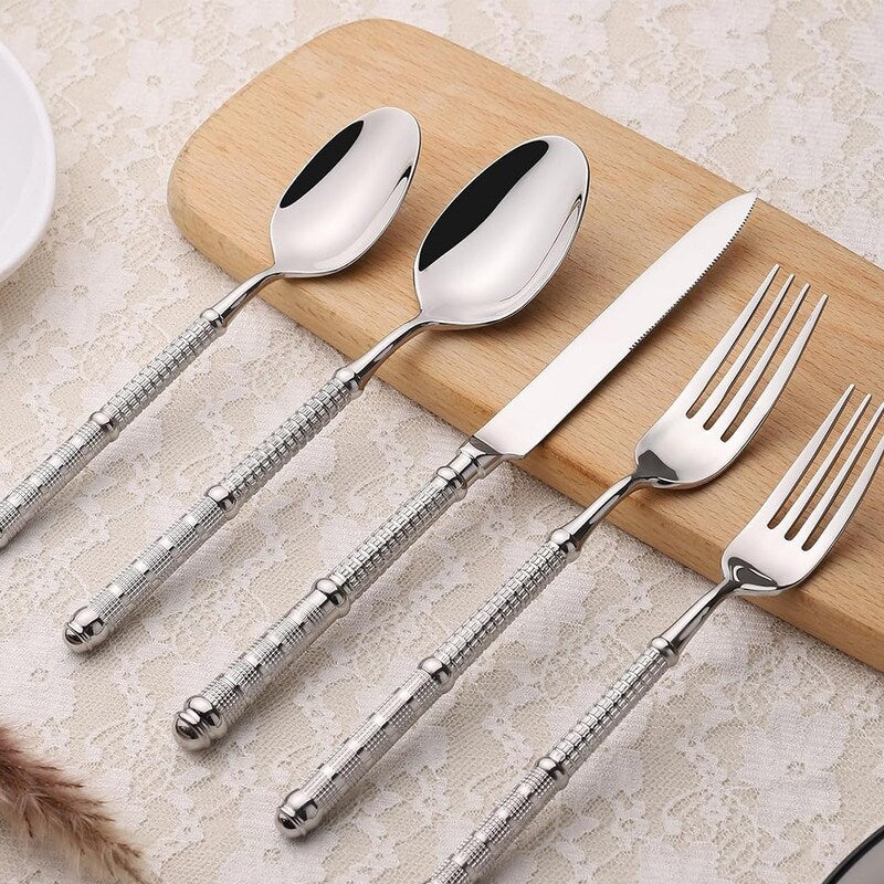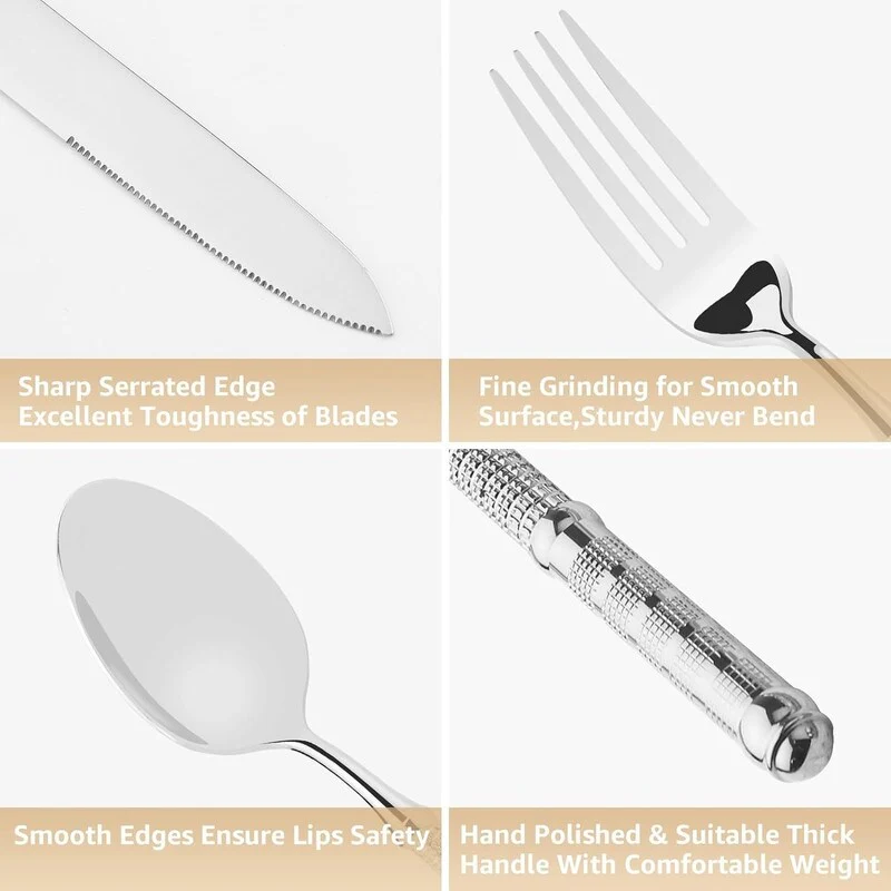 - SILVERWARE SET INCLUDES: 20-piece flatware set includes 4 dinner knife,4 dinner fork,4 dinner spoon,4 salad fork and 4 teaspoon.
