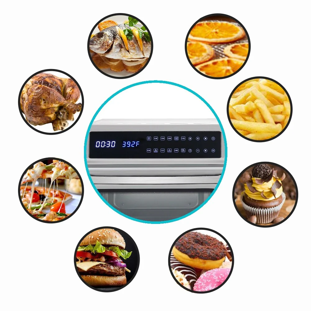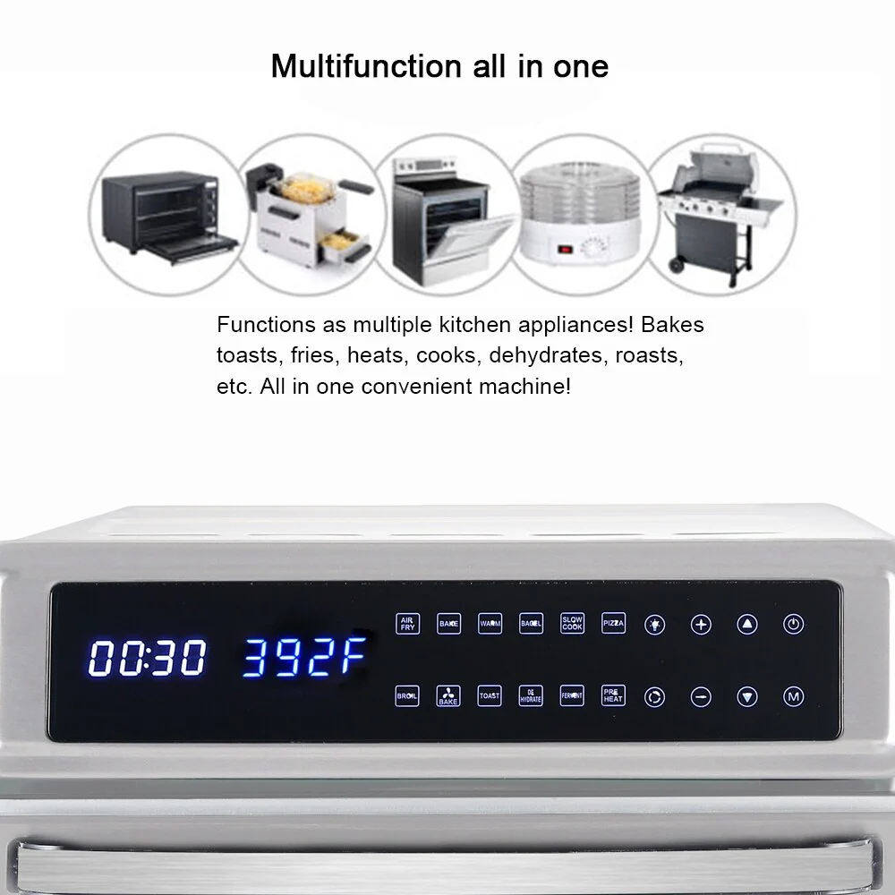 2. Digital easy one touch panel, 11 preset quick menus, one button control: Internal lighting and rotisserie. Dehydration function dehydrates foods such as fruit, veggies, and beef jerky, along with