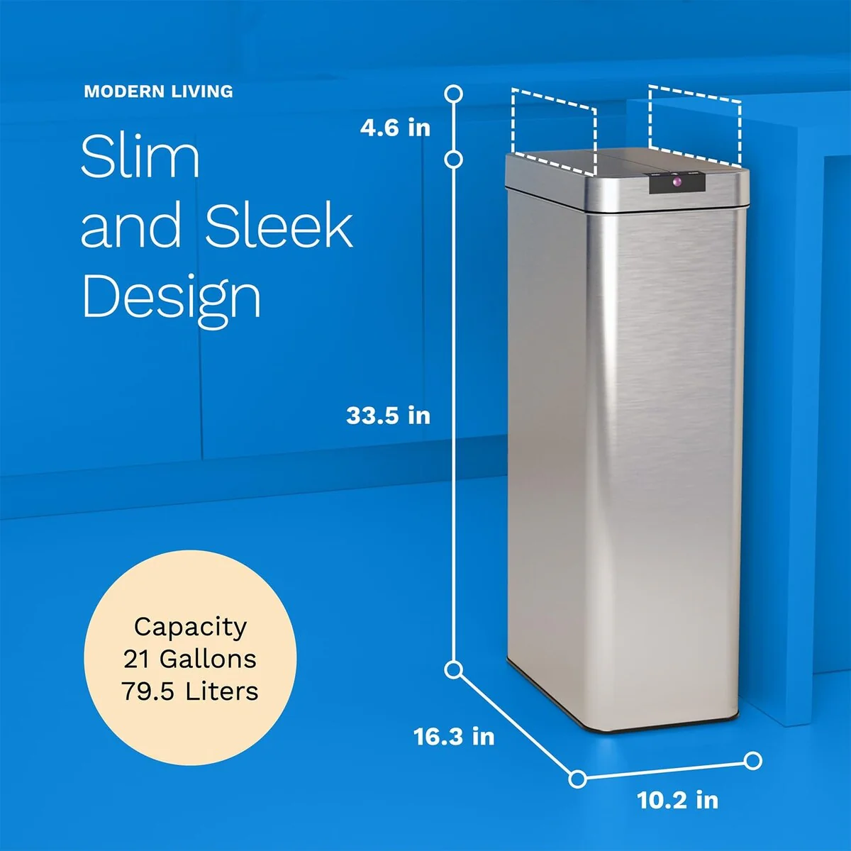 21 Gallon Trash Can – Stainless Steel with No Touch Motion Sensor Butterfly Lid and Infrared Technology with AC Power Adapter