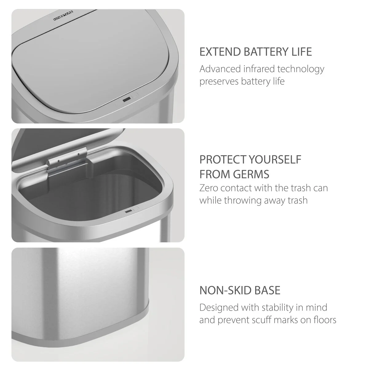 【Durable Stainless Steel Construction】: Made From High-Quality 430-Grade Stainless Steel, This Touchless Garbage Bin Is Fingerprint-Resistant and Built To Last Through Years of Use.