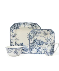 Bring the beauty of a romantic spring scene to your table with 222 Fifth’s Adelaide Blue 16-Piece Porcelain Dinnerware Set. The classic toile pattern on a white backdrop is sure to impress your guests, while the versatile design mixes and matches easily with other dinnerware and serving pieces. Made of fine porcelain with hand-applied decal, this service for 4 includes square dinner plates, salad plates, cereal bowls, and mugs. The chip-resistant dinnerware is both dishwasher and microwave safe, perfect for everyday use or special occasions. Elevate your dining experience with the Adelaide collection from 222 Fifth.