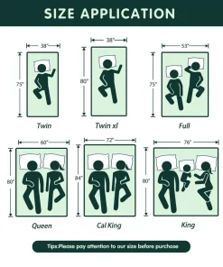 - King: 76 inches wide x 80 inches long x 2/3/4 inches thick