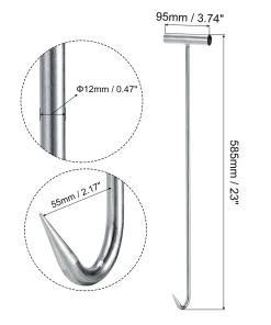 1. Design – With a T-shape handle, this meat processing hook is comfortable to hold, non-slip and wear-resistant, labor-saving. The sharp point can easily insert the meat and grip steadily for your quickly cutting.