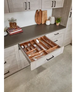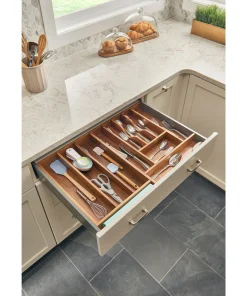 -Organize kitchen drawers with Rev-A-Shelf”s Wood Utility Tray Insert. The 4WUT Series is made of either our classic Maple hardwood with a UV cured clear finish or our walnut construction with satin finish to ensure an acceptable match to any kitchen cabinet. This modern day clutter solution requires a simple drop-in installation with various sizes that may be trimmed to fit your drawer size. :