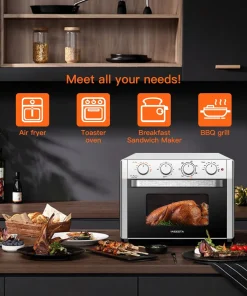 This air fryer oven includes 7 multi-function presets: air frying, toast/baking, grilling, grilling, defrosting, convection grilling and grilling