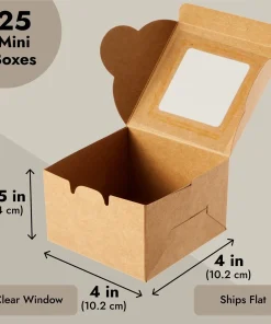 25Pcs Mini Cake Boxes with Window – 4x4x2.5