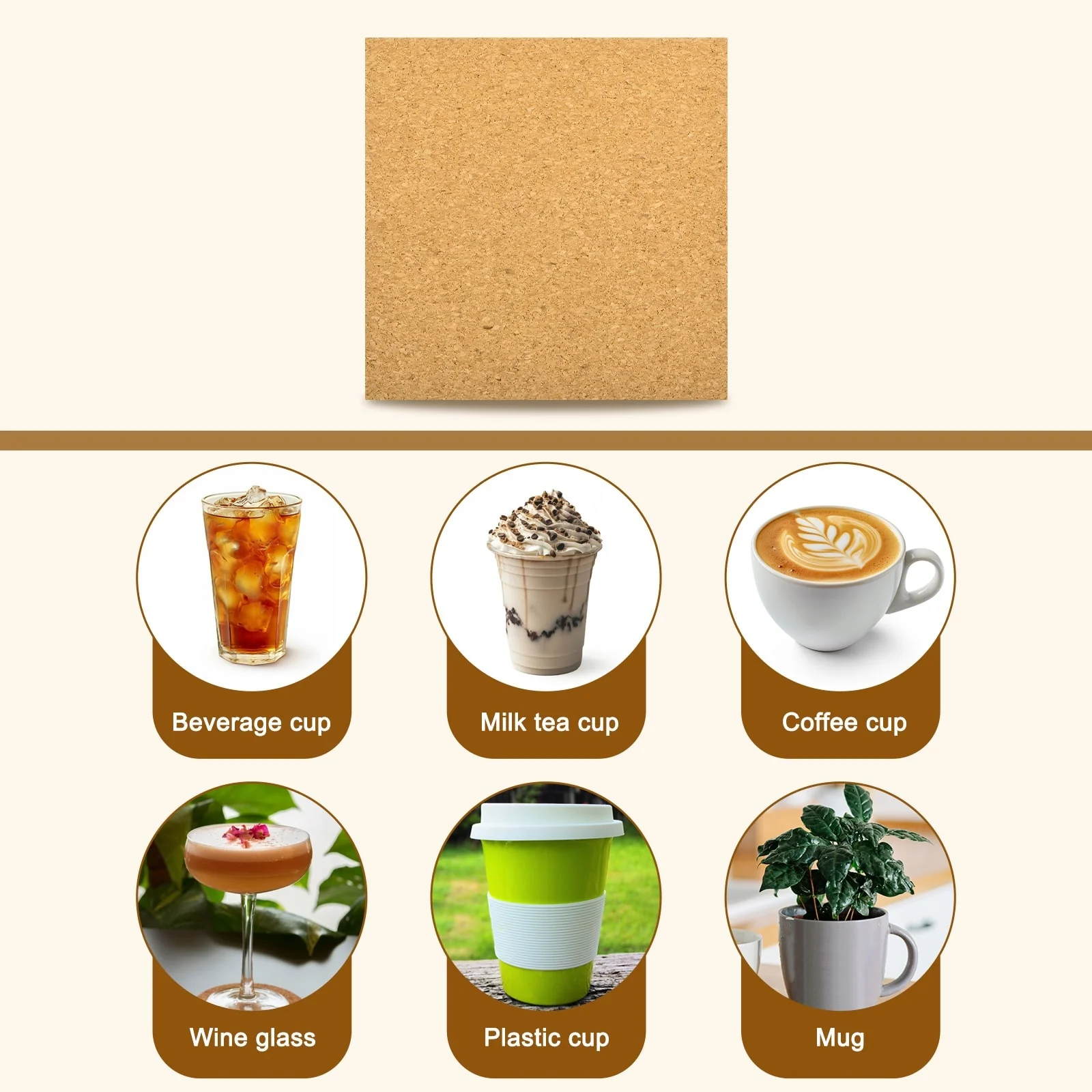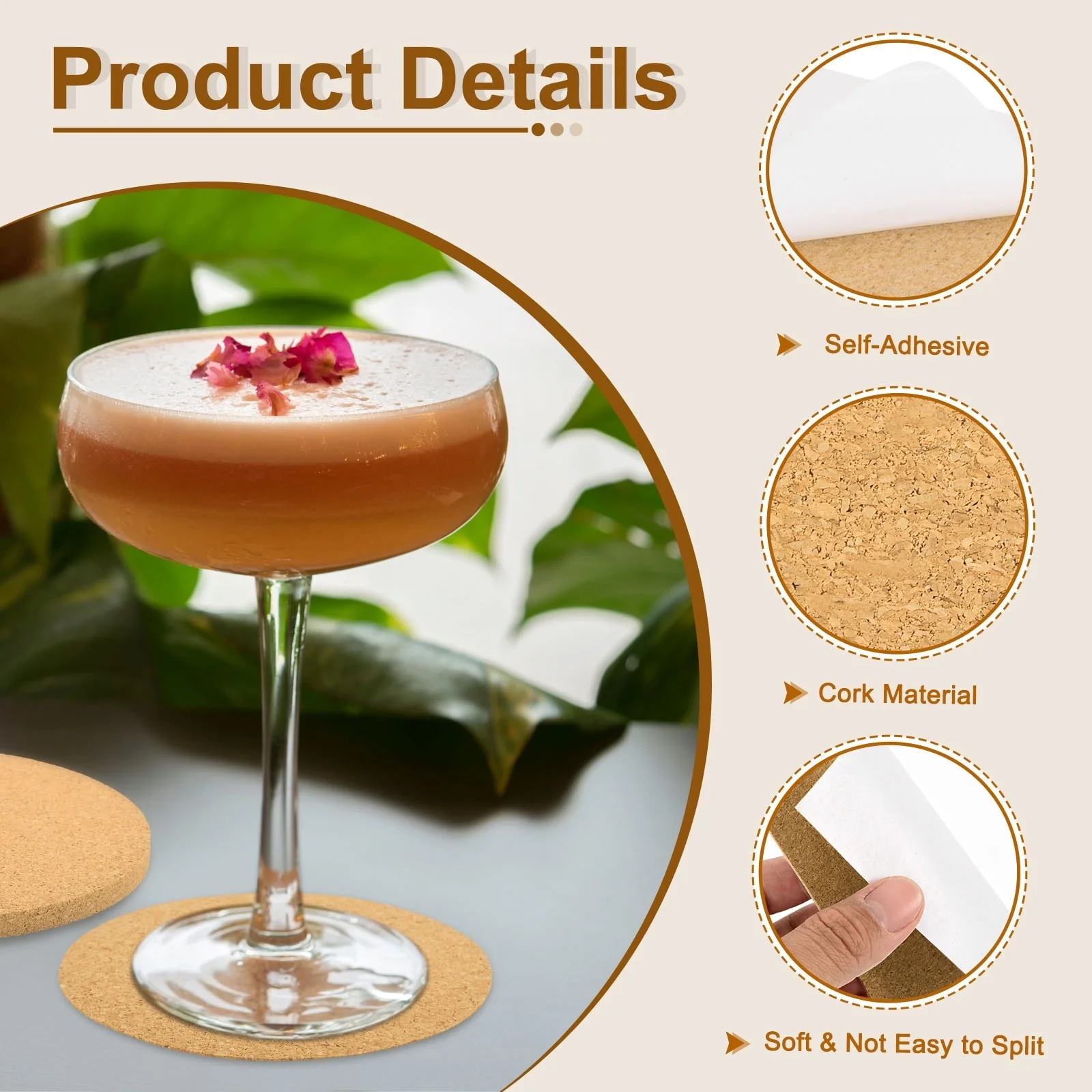 - [Self-Adhesive & Non-Slip]: Our self-adhesive cork mats have clear and delicate textures, elegant and beautiful, with a strong adhesive coating. Just peel off the backing and stick them to smooth surfaces such as plastic, ceramic, marble, etc. They have an anti-slip effect to ensure that the cups are placed stably and reduce the risk of slipping.