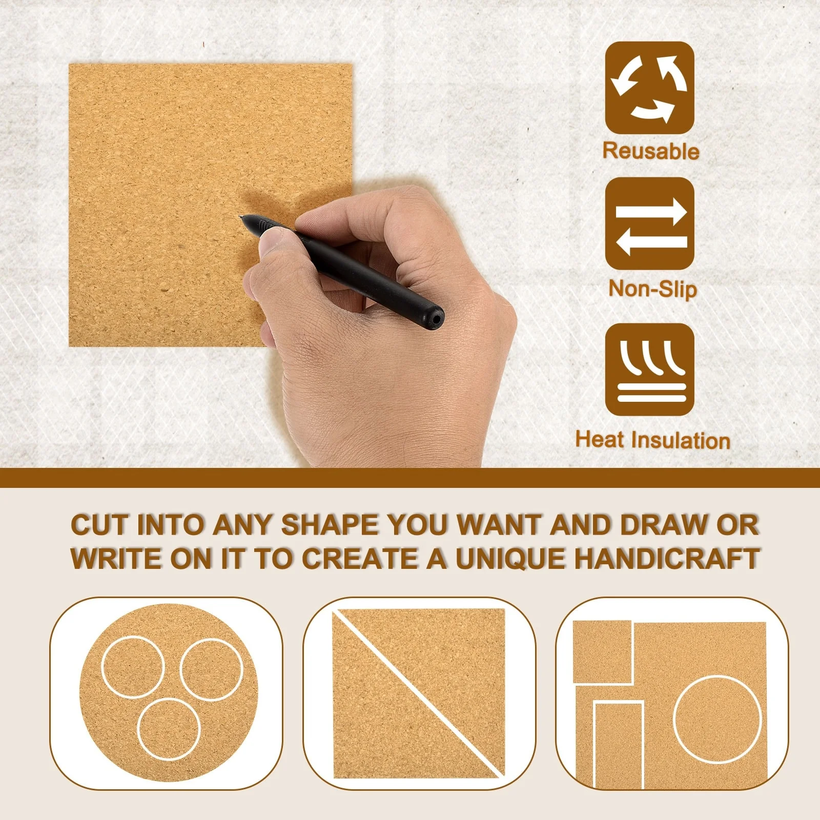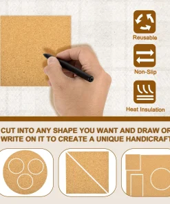 - [DIY Craft]: These self-adhesive cork for coasters are easy to cut, you can use scissors to easily trim them into any shape you like, and the surface can also be written, or painted according to your preferences, which is a good material for making decorative mini wall tiles or other DIY crafts.