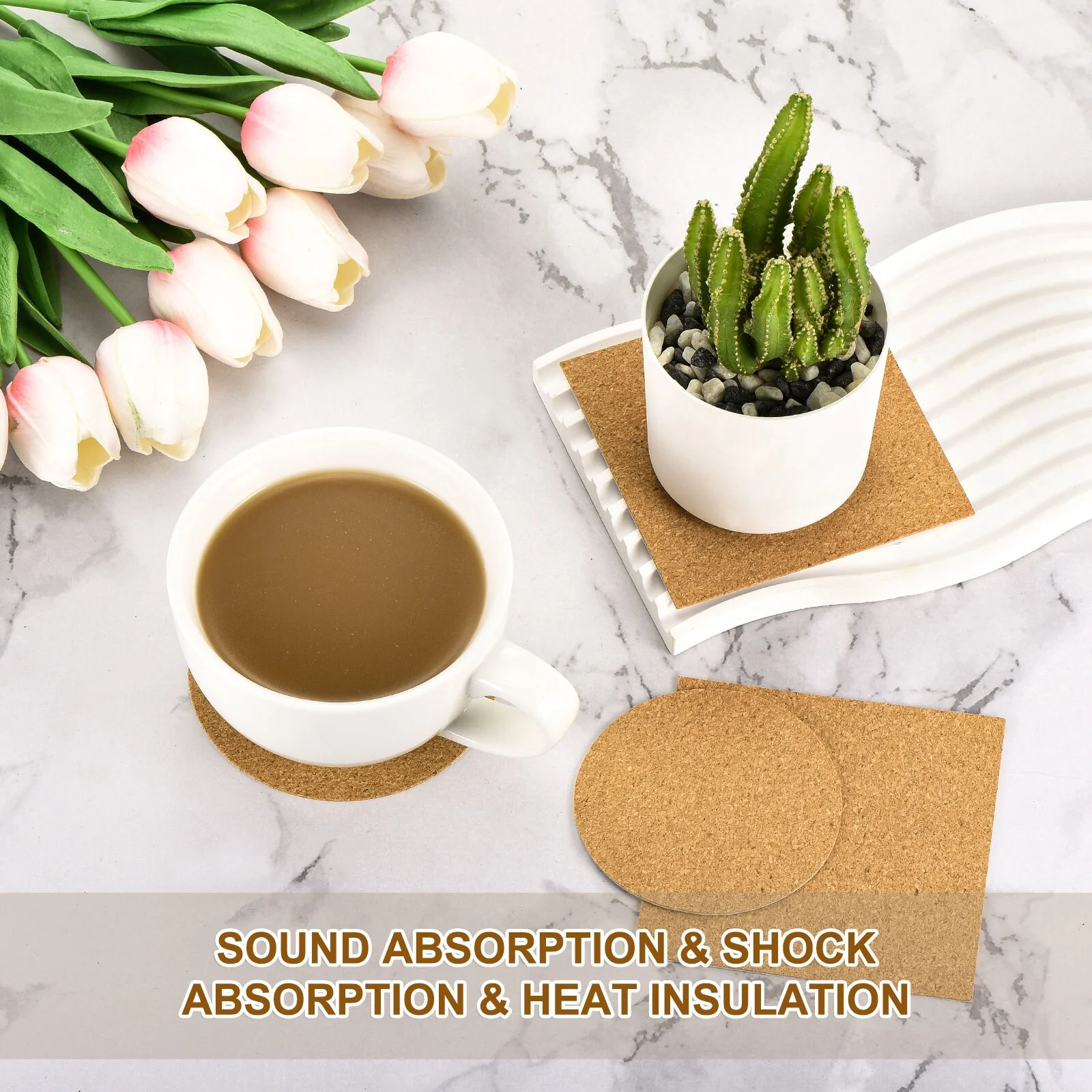 - [Material]: Made of quality cork, these coasters have good water absorption, non-slip and wear-resistant, heat-insulating and odor-free, are not easy to break, and are suitable for long-term use.
